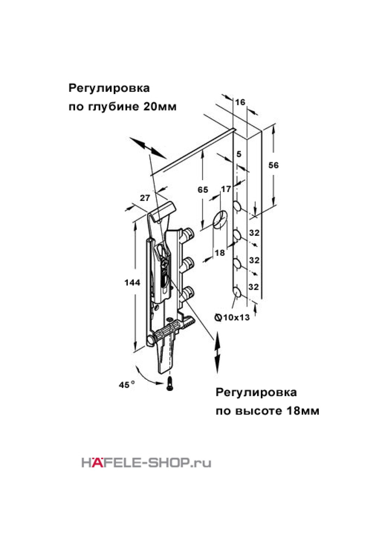 Технические характеристики Навес для шкафов под запресовку регулируемый 130кг левый 290.21.901 Hafele