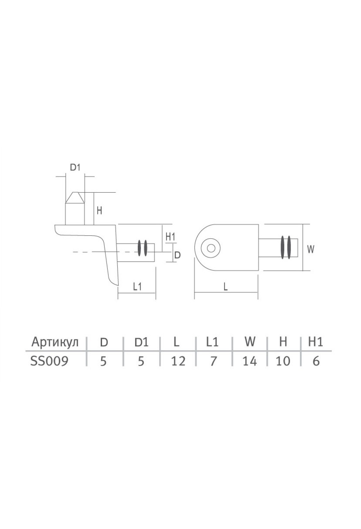 - Полкодержатель угловой со штифтом, никель SS009