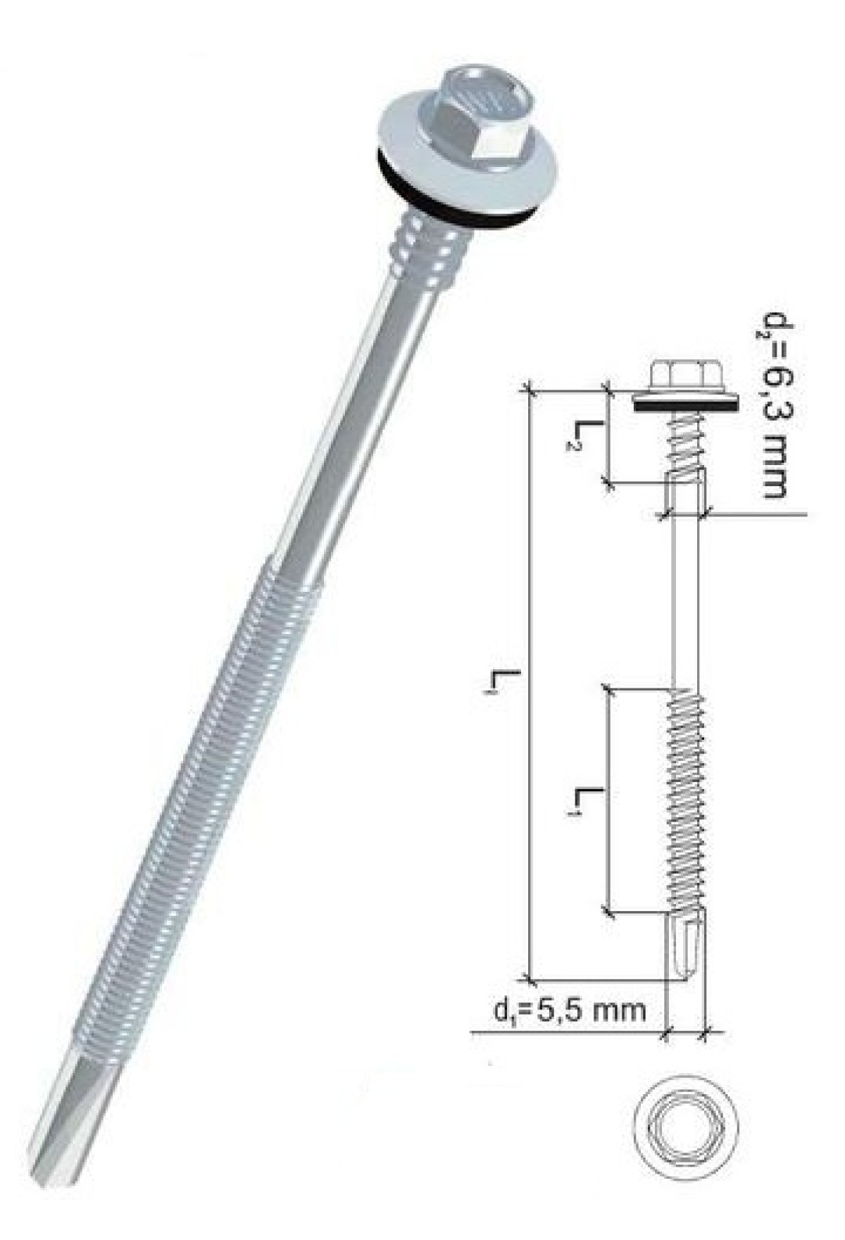 саморез 6,3/5,5*130 двухзаходный для сэндвич-пан/цинк