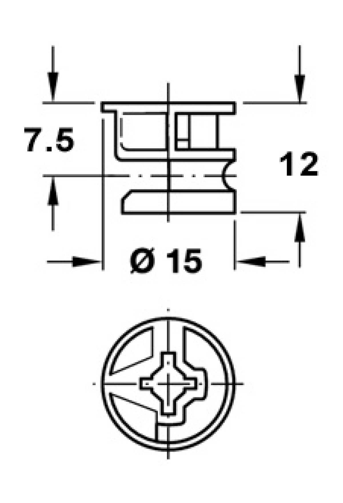 Технические характеристики эксцентрик MINIFIX 15 без покрытия для плит 16мм/262.26.033