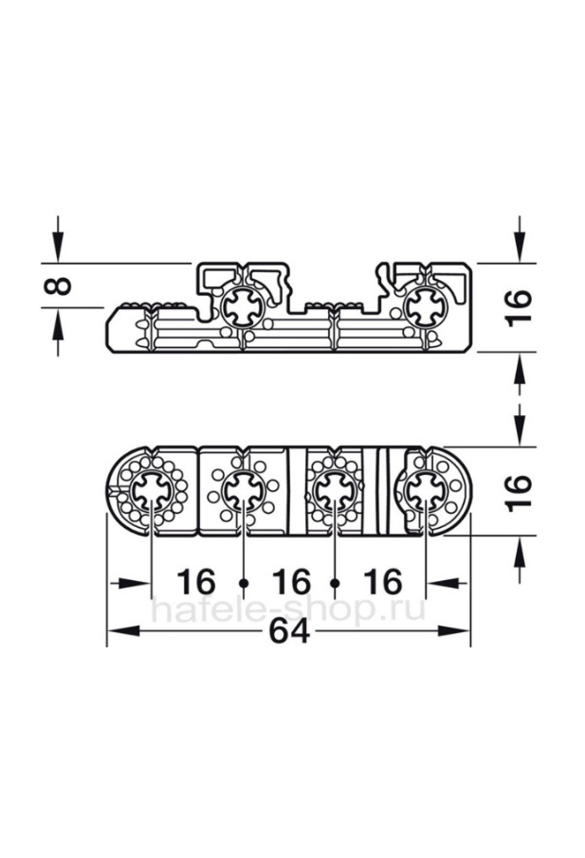 Подходит для крепления в шаговые отверстия системы 32 мм.