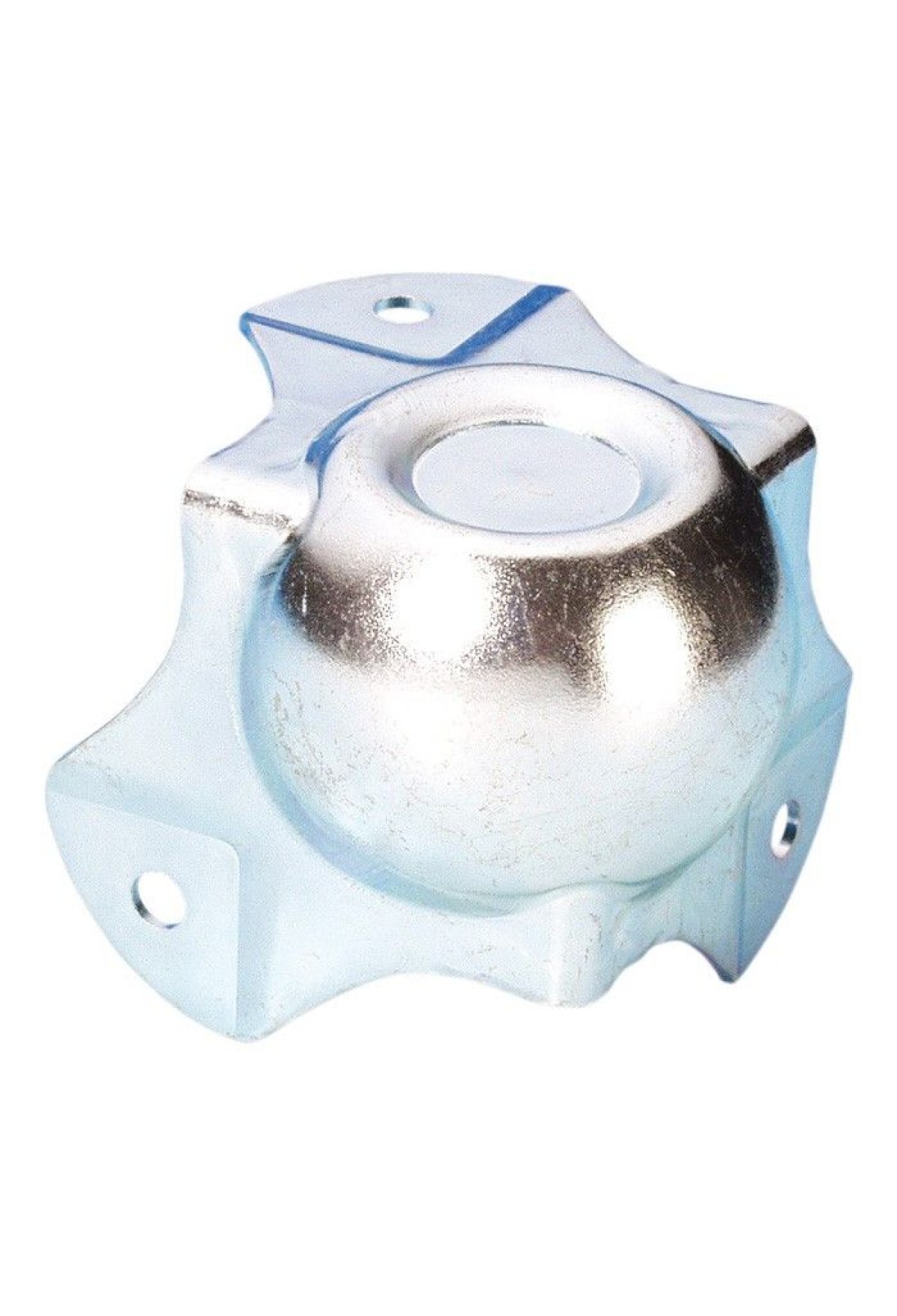 уголок-оковка шаровый средний 51*51 с тремя ножками и углублением для штабелирования, цинк белый