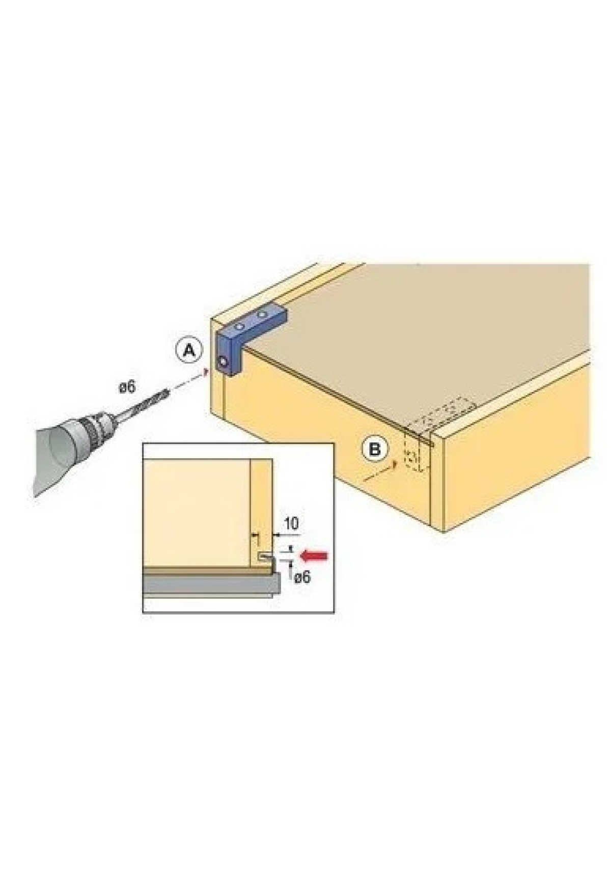 Для сверления отверстий ø 6 мм под С-образный крючок на всех направляющих Actro и Quadro для деревянных ящиков, для любой монтажной ширины (EB)
