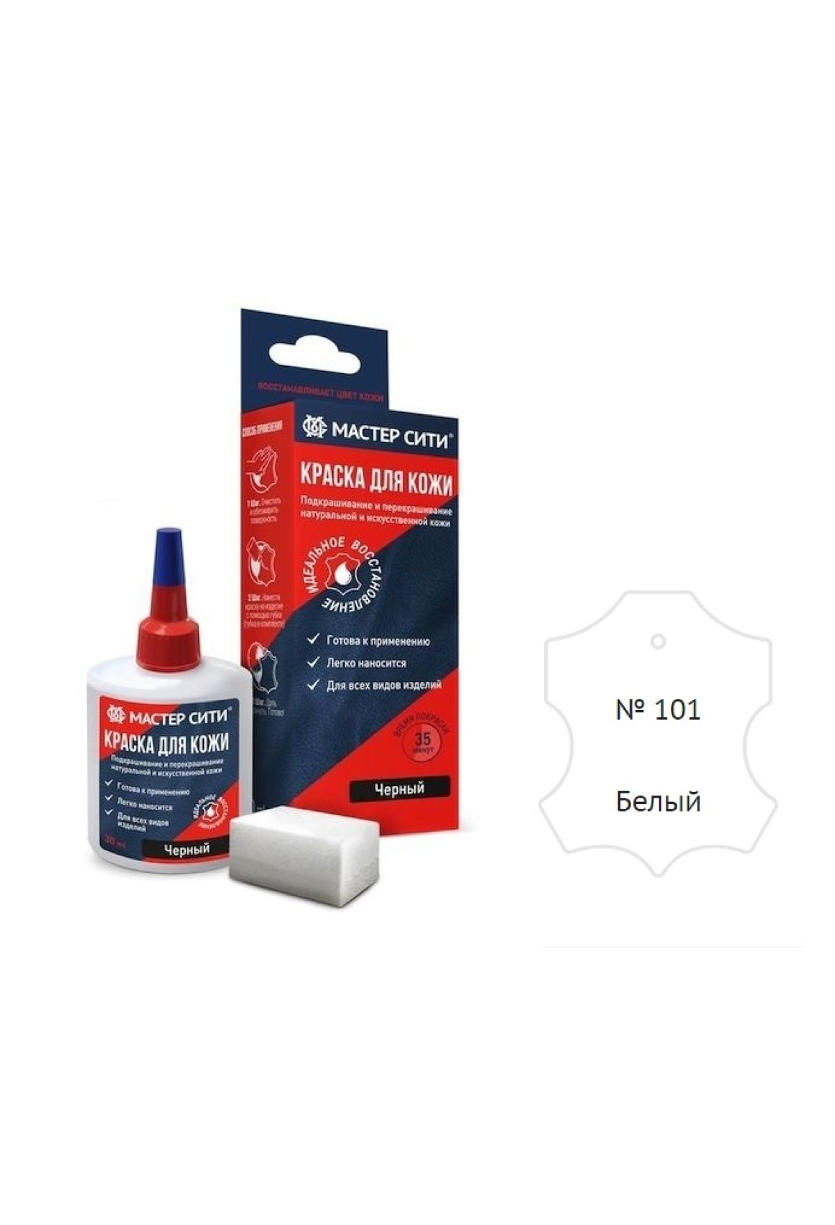Краска для кожи «Мастер Сити» предназначена для эффективного восстановления и перекрашивания натуральной и искусственной гладкой кожи.
