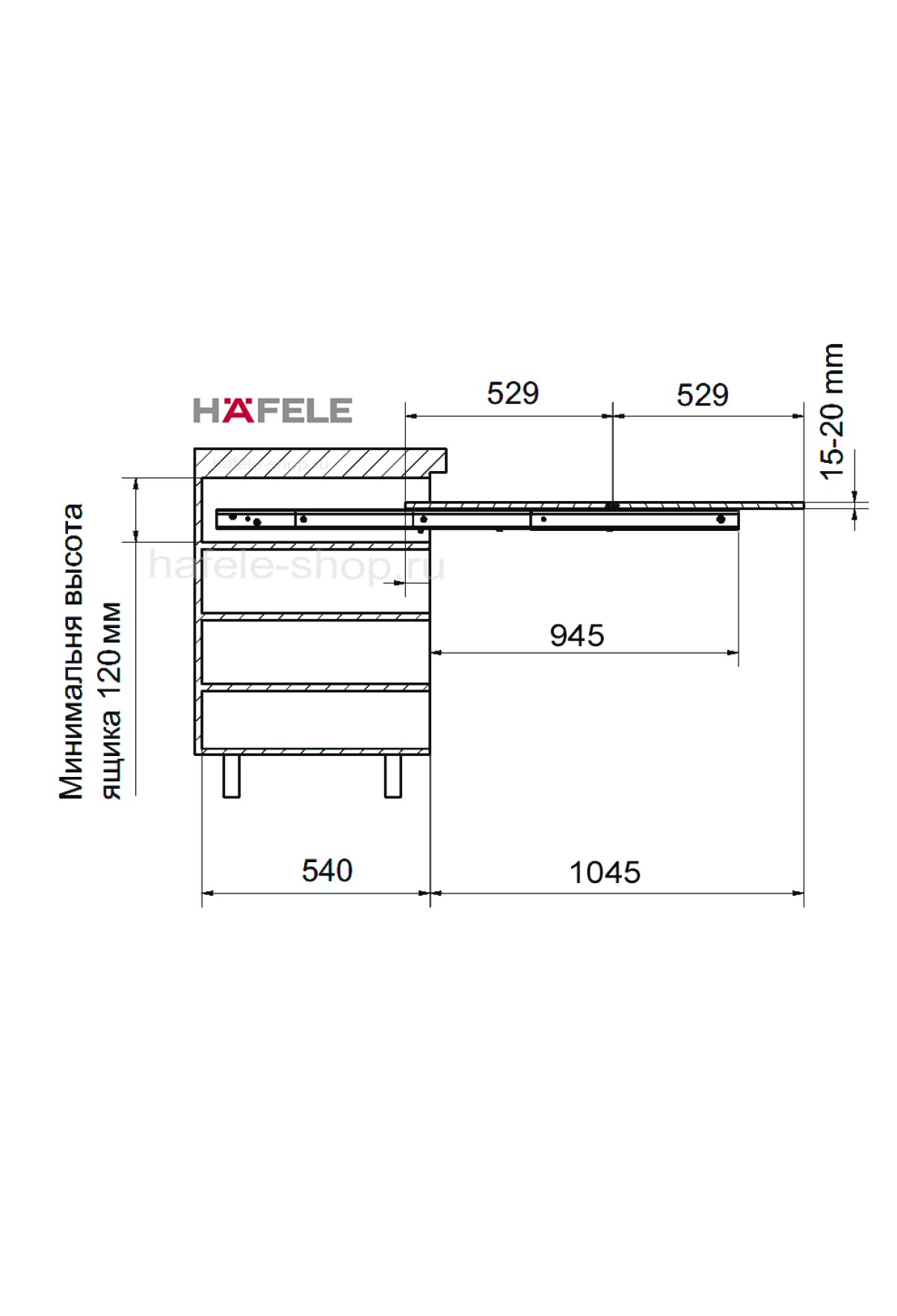 Механизм трансформации столешницы Lunch-reverse 550/900мм 505.73.954 Hafele
