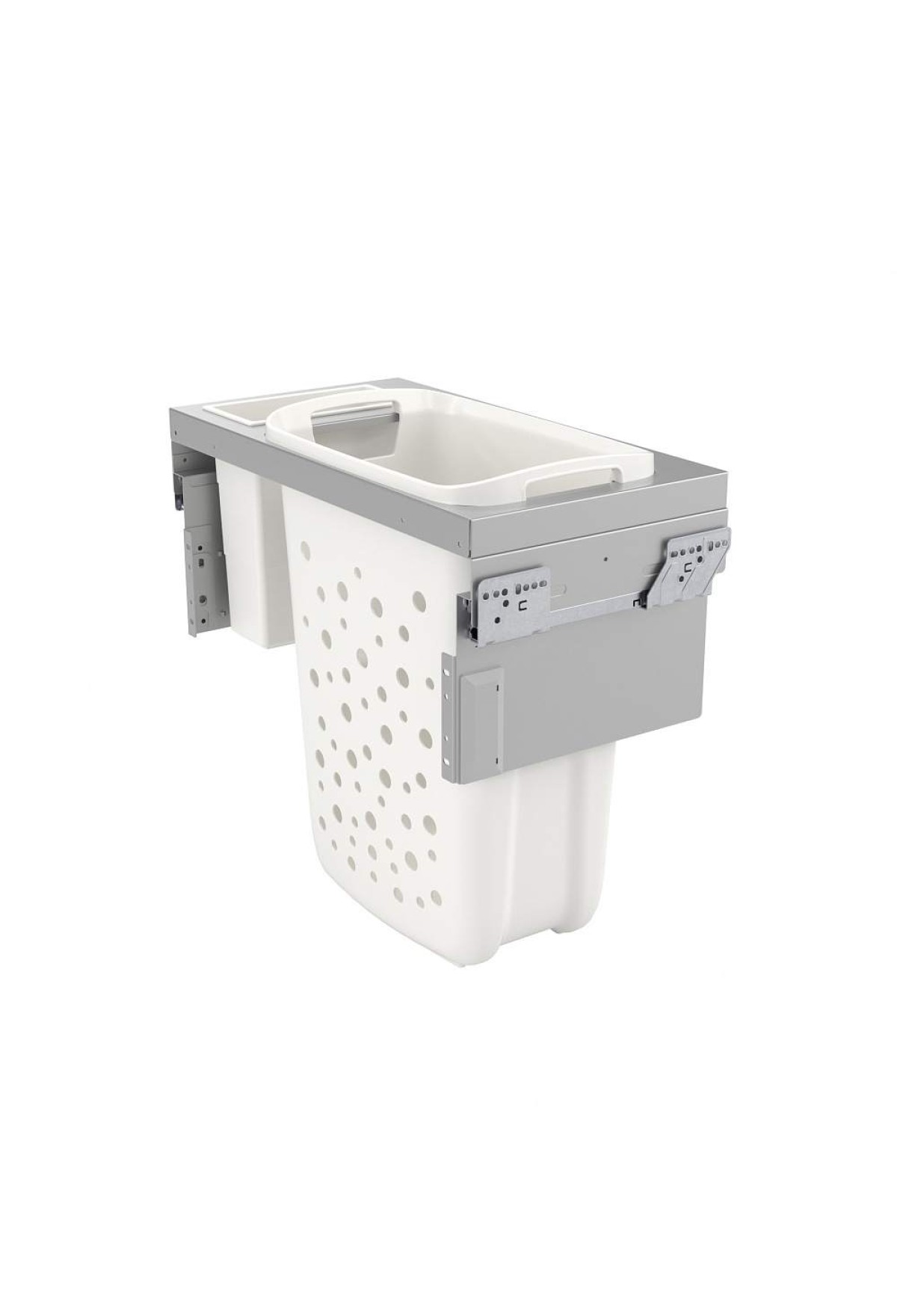 Система для хранения белья для установки в шкафы с внутренней глубиной не менее 300 мм. Компактная система привлекает тем, что ее можно устанавливать в шкафы небольшой глубины, а также в стандартные шкафы. в последнем случае позади системы остается свободное пространство для установки необходимых приборов, например, проточного водонагревателя или системы водоподготовки. Корзина с перфорациями для свободной циркуляции воздуха. Направляющие с панелями, препятствующими попаданию мусора в механизм и защемлению белья. Полное выдвижение для комфортного доступа. Мягкое плавное открывание и закрывание.