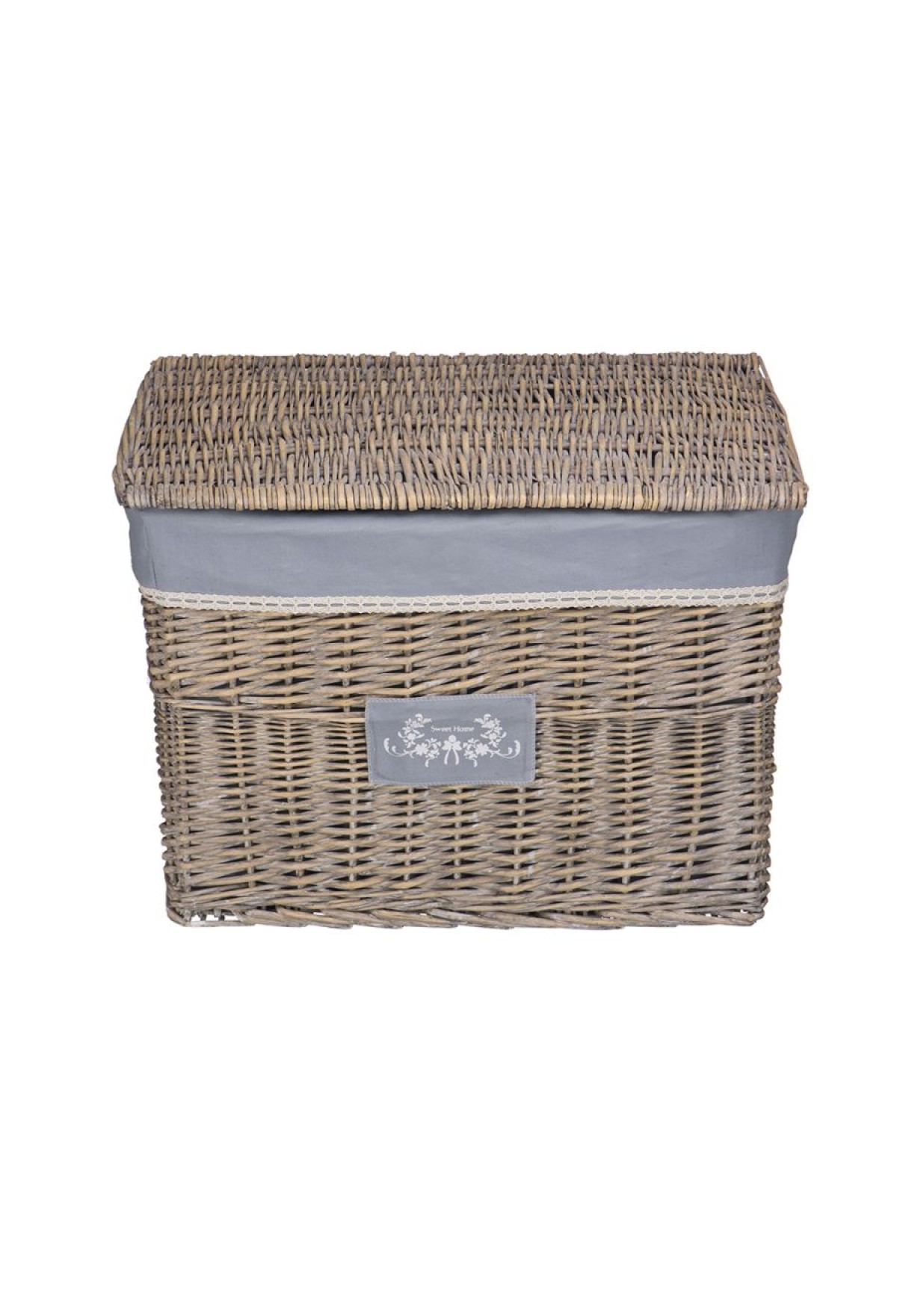 Плетеная бельевая корзина прямоугольной формы с крышкой станет прекрасным дополнением интерьера.