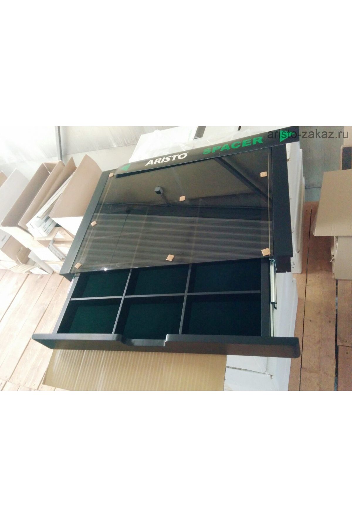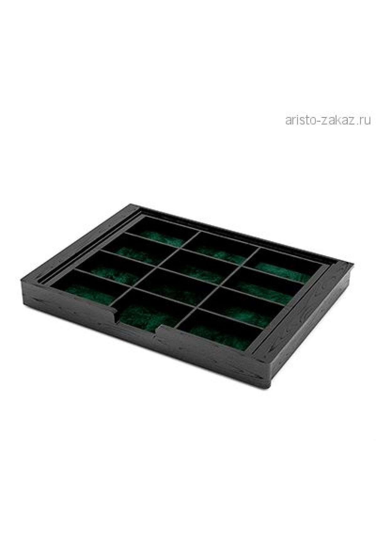 Полка для аксессуаров – шикарный элемент гардеробной системы ARISTO. Деревянная фактура полки с «бархатным» внутренним наполнением – идеальное сочетание материалов для хранения ваших аксессуаров. Внутренняя часть полки делится на небольшие отсеки, есть также отделение для хранения колец и сережек. Выдвижной механизм с доводчиком легко скользит при открывании и плавно закрывает. Полка может закрываться сверху стеклянной панелью или крышкой из дерева в цвет декора.