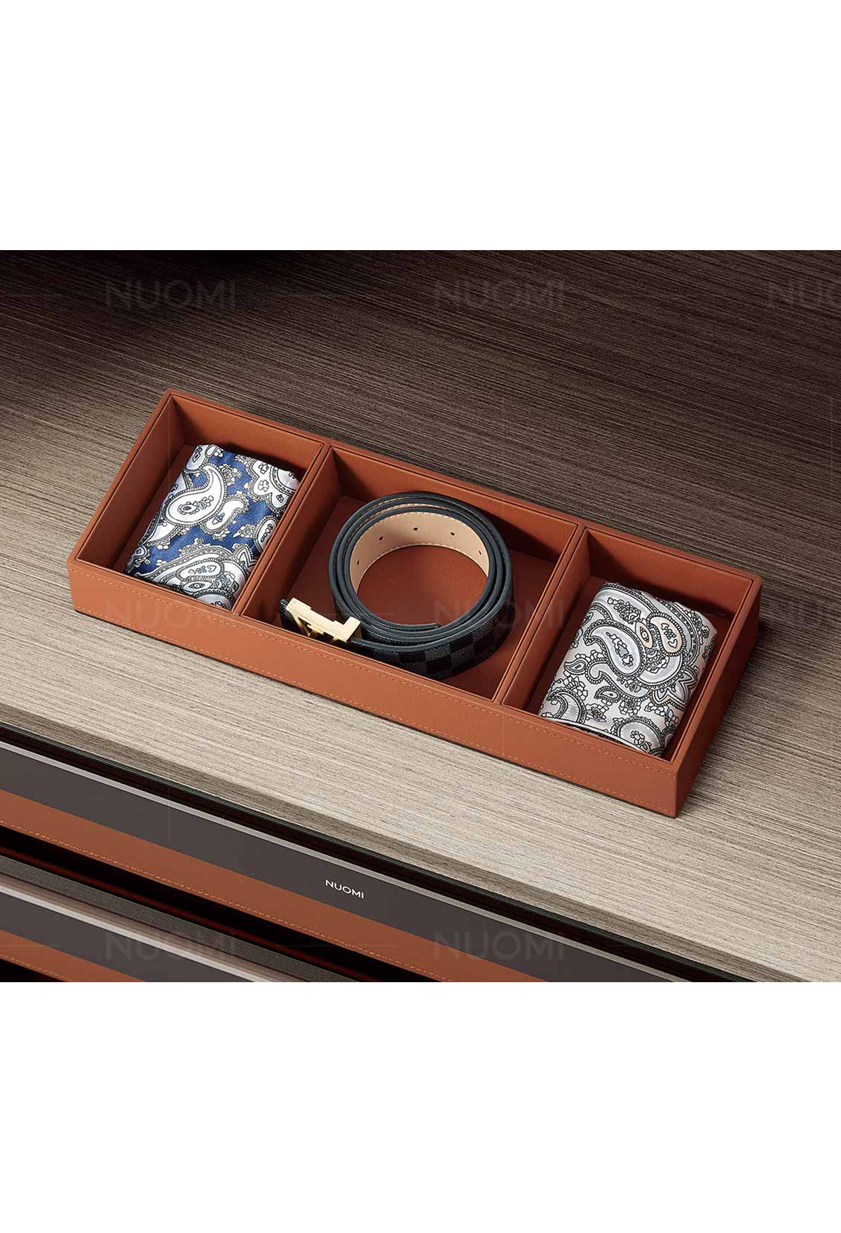 Органайзеры можно комбинировать и тем самым полностью организовать ящик для хранения: шарфов, платков, галстуков, ремней, часов, колец, запонок, других аксессуаров и мелких предметов.