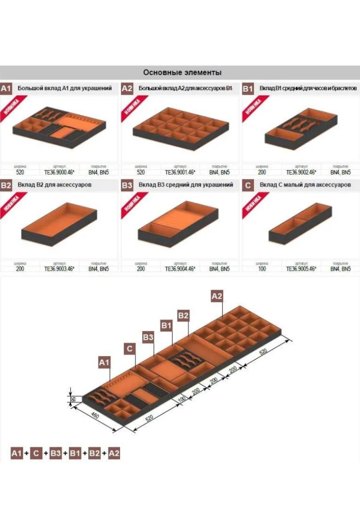 Технические характеристики органайзер д/акскссуаров в базу A1 600мм, белый/черный, экокожа/ткань/TE36.9000.46.BN5