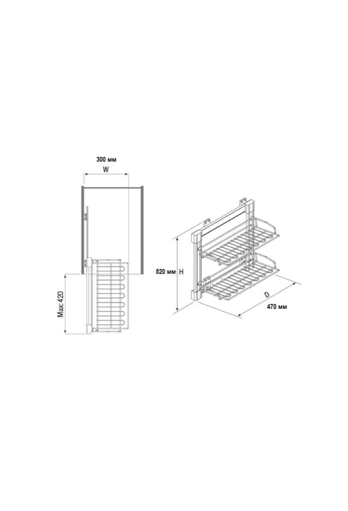 Технические характеристики полка для обуви выдвижная 2-х уровневая STARAX, левый, с доводчиком, серый/S-6281-G