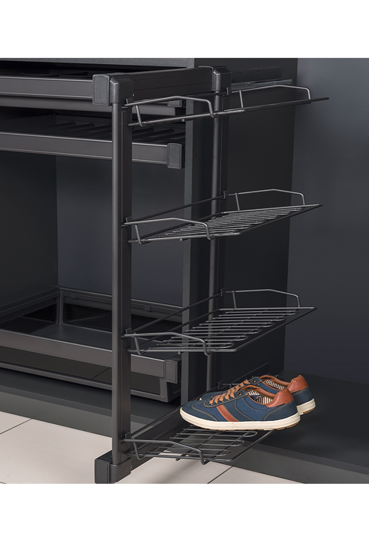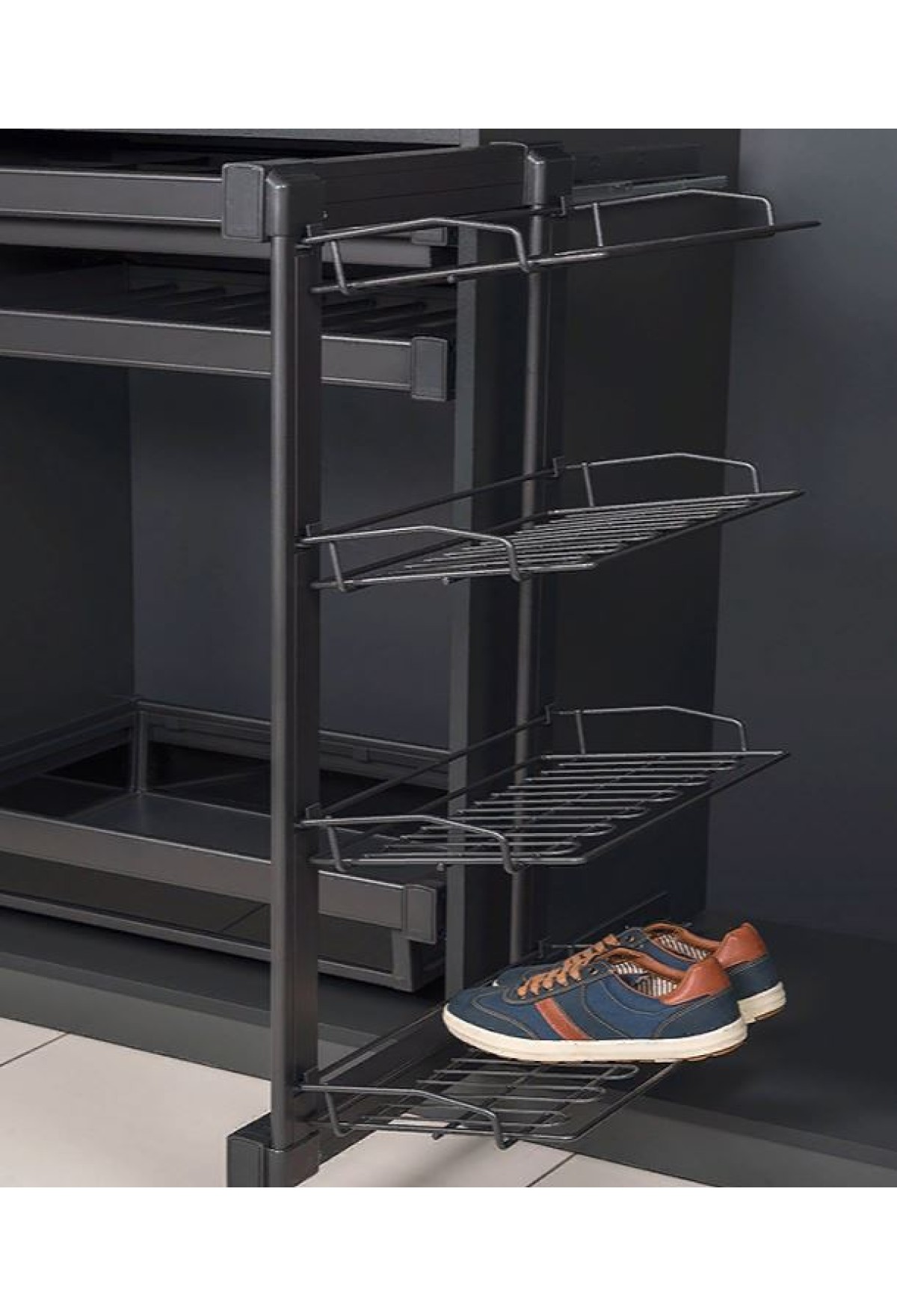 полка для обуви выдвижная 4-х уровневая STARAX, левый, антрацит/S-6741-A