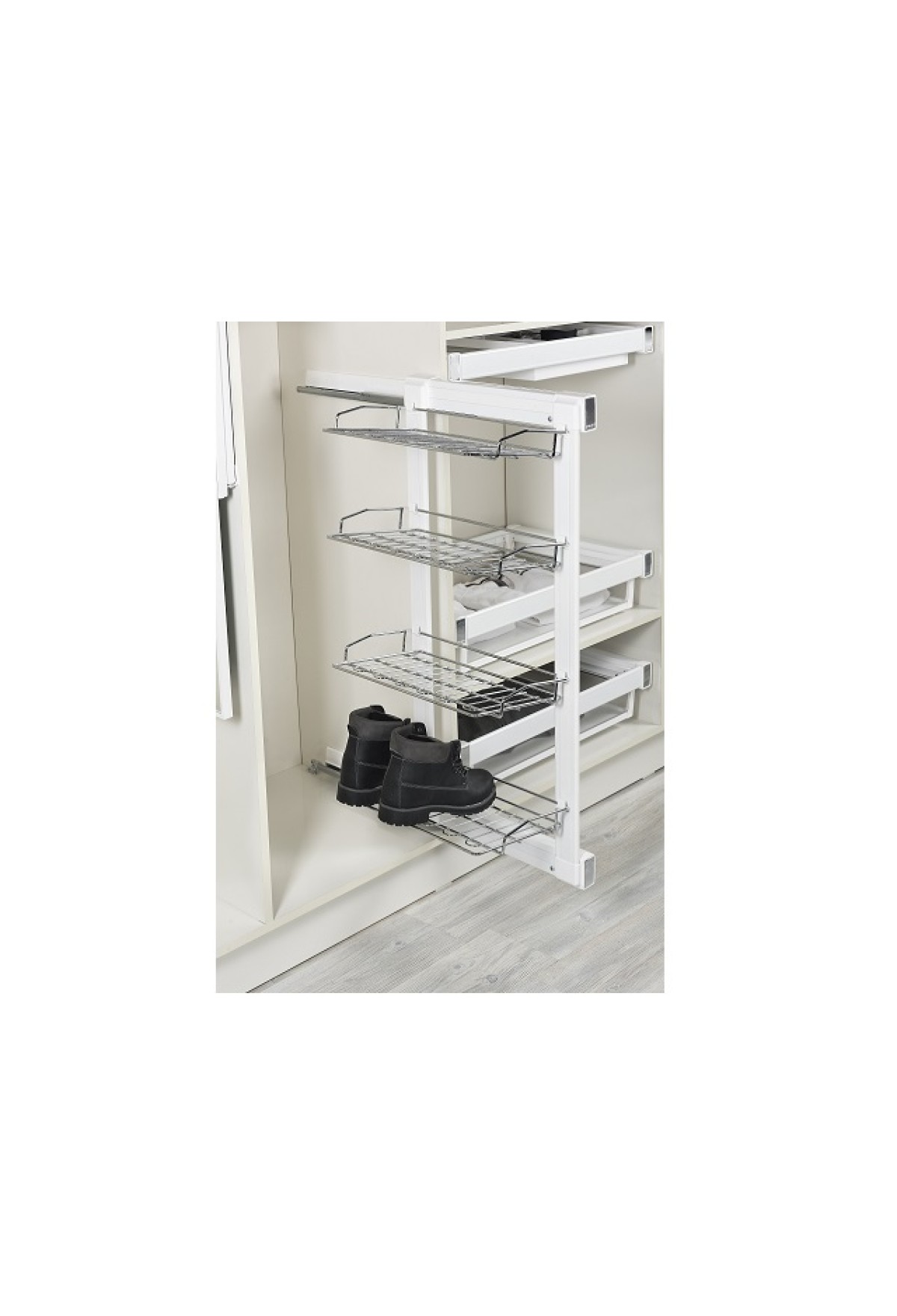 полка для обуви выдвижная 4-х уровневая STARAX, левый, белый/S-6741-W