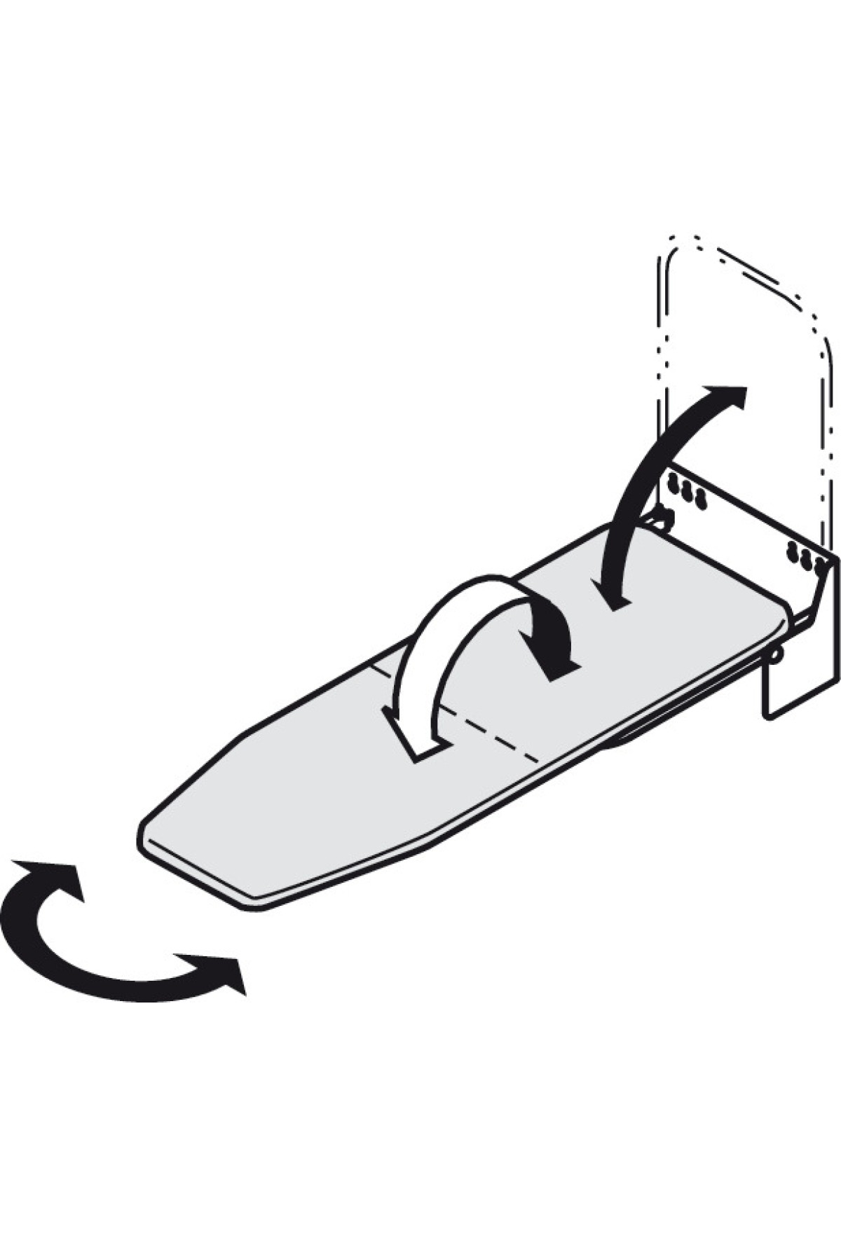Гладильная доска полностью смонтированная. Откидная. Поворачивается на 180гр. И фиксируется.
