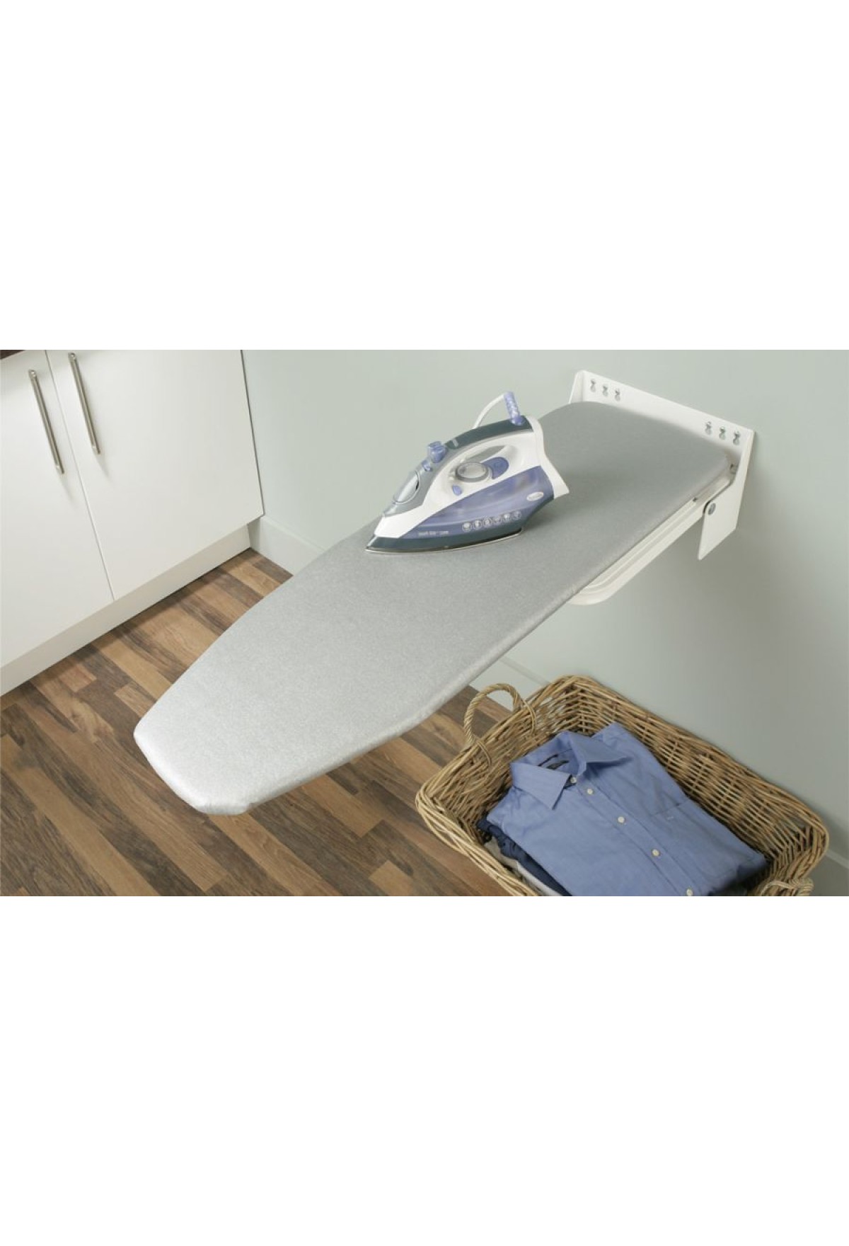 Предназначена для крепления к стене. Детали фурнитуры сделаны из стали с пластиковым покрытием; гладильное полотно - хлопок с подложкой из синтепона.