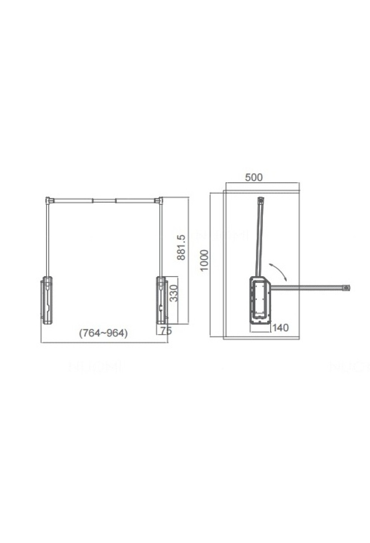 Габариты пантографа с креплениями: ширина 764-968 мм, глубина 140 мм, высота 881,5 мм.