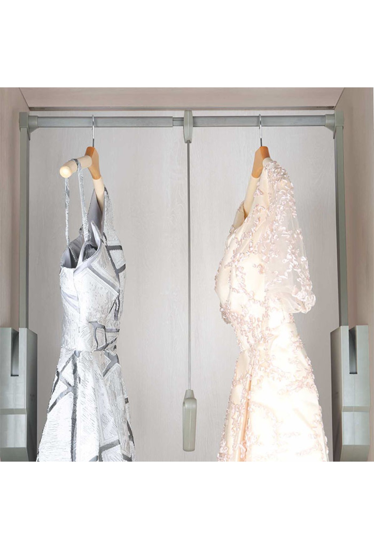 Дизайн штанги выполнен таким образом, чтобы избежать царапин и скольжения вешалок.