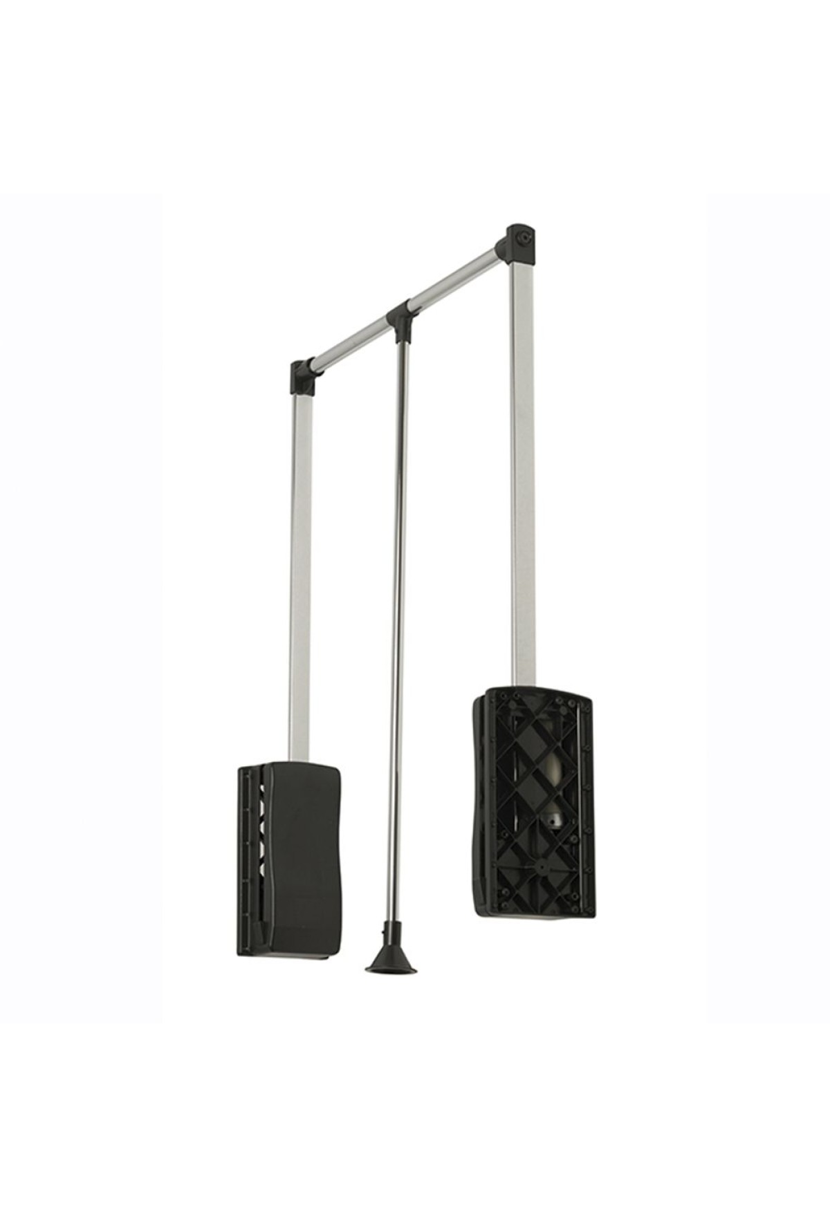 Пантограф 60/83 стальной с газовым амортизатором, черный - гардеробный механизм, посредством которого опускается штанга с одежными вешалками в шкафу. Вы открываете (отодвигаете) дверь шкафа, тянете за ручку механизма, перекладина с вешалками смещается вниз, и вы берете нужный предмет одежды