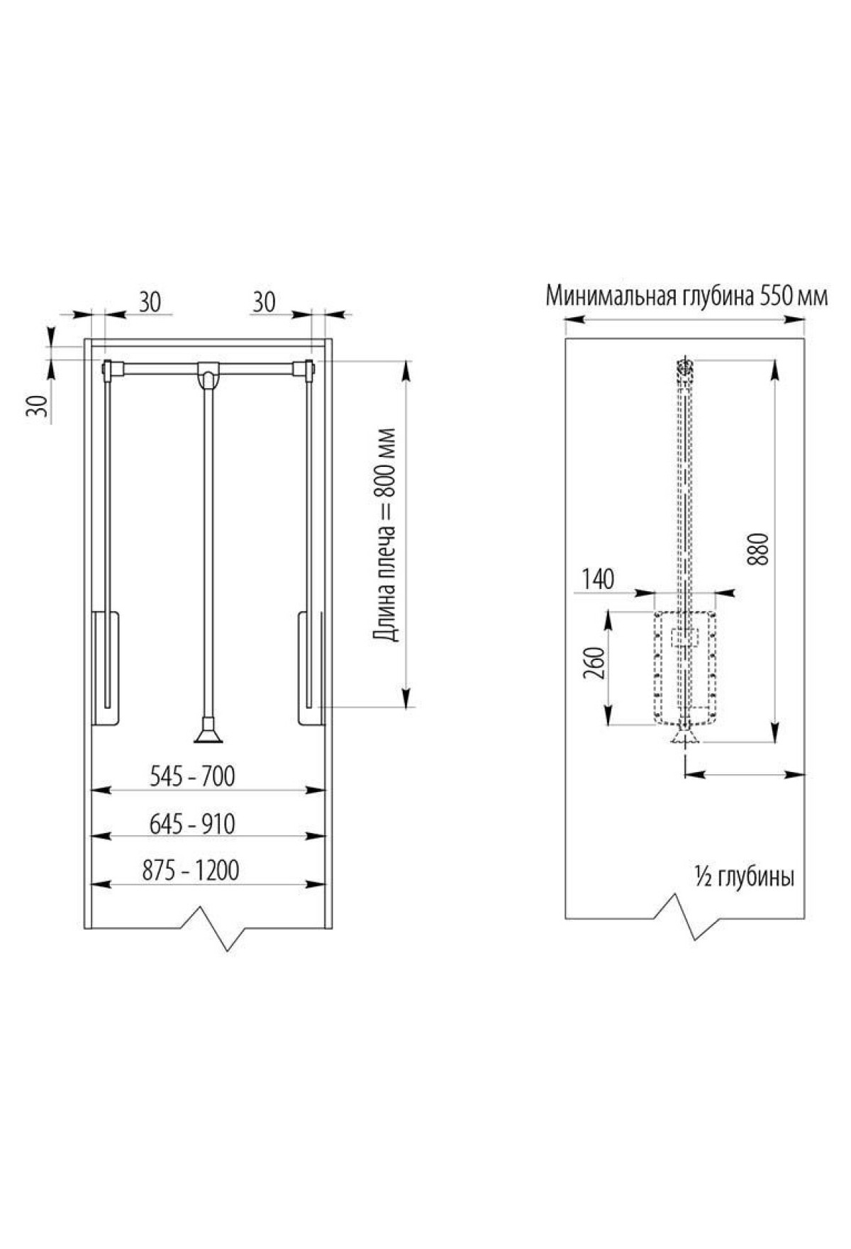 Телескопическая штанга перед установкой в шкаф регулируется в пределах 60-83 см.