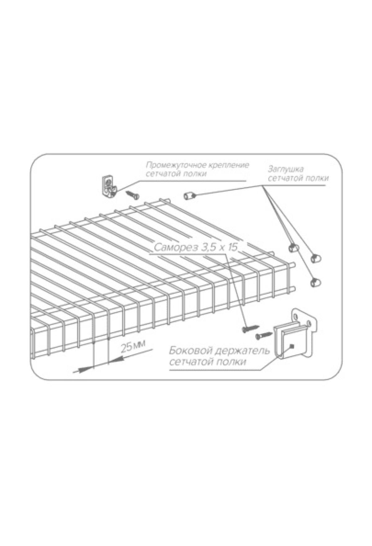 Полка сетчатая в шкаф 400*3000мм белая На складе Код товара: LV-25199 Полка сетчатая в шкаф 400*3000мм белая