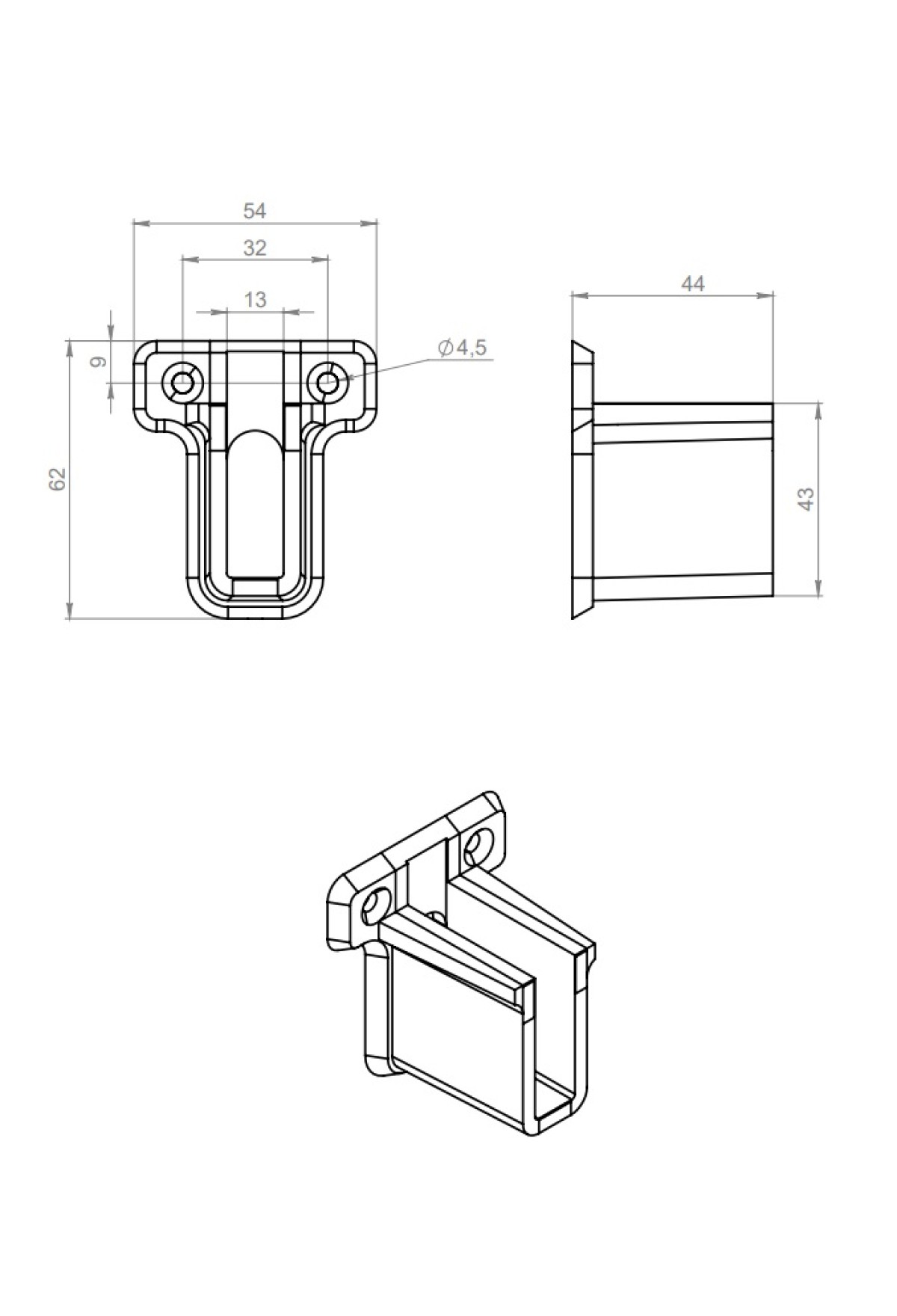 Наконечник для сетчатой полки в шкаф серый