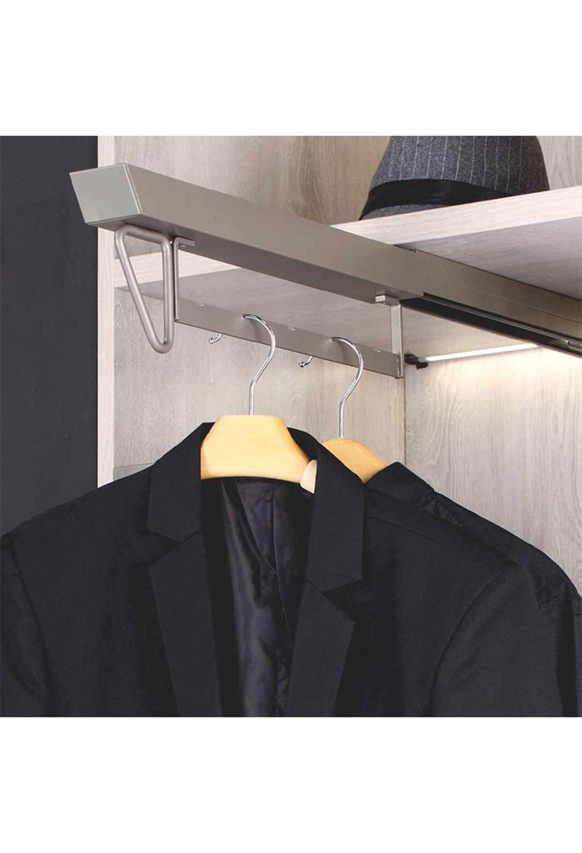 Выдвижная штанга предназначена для встраивания в секцию шкафа. Изготовлена из высококачественных материалов, выдерживает большую нагрузку.