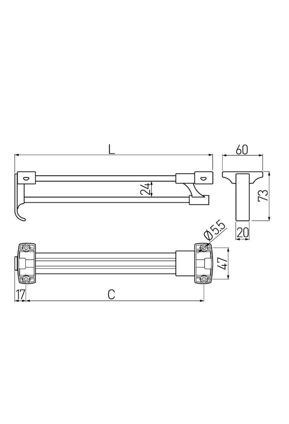Обращаем внимание, что в наименовании товара указан ГАБАРИТНЫЙ размер штанги в задвинутом состоянии (L= 250 мм). Длина выдвижной части вешалки C = 220 мм.