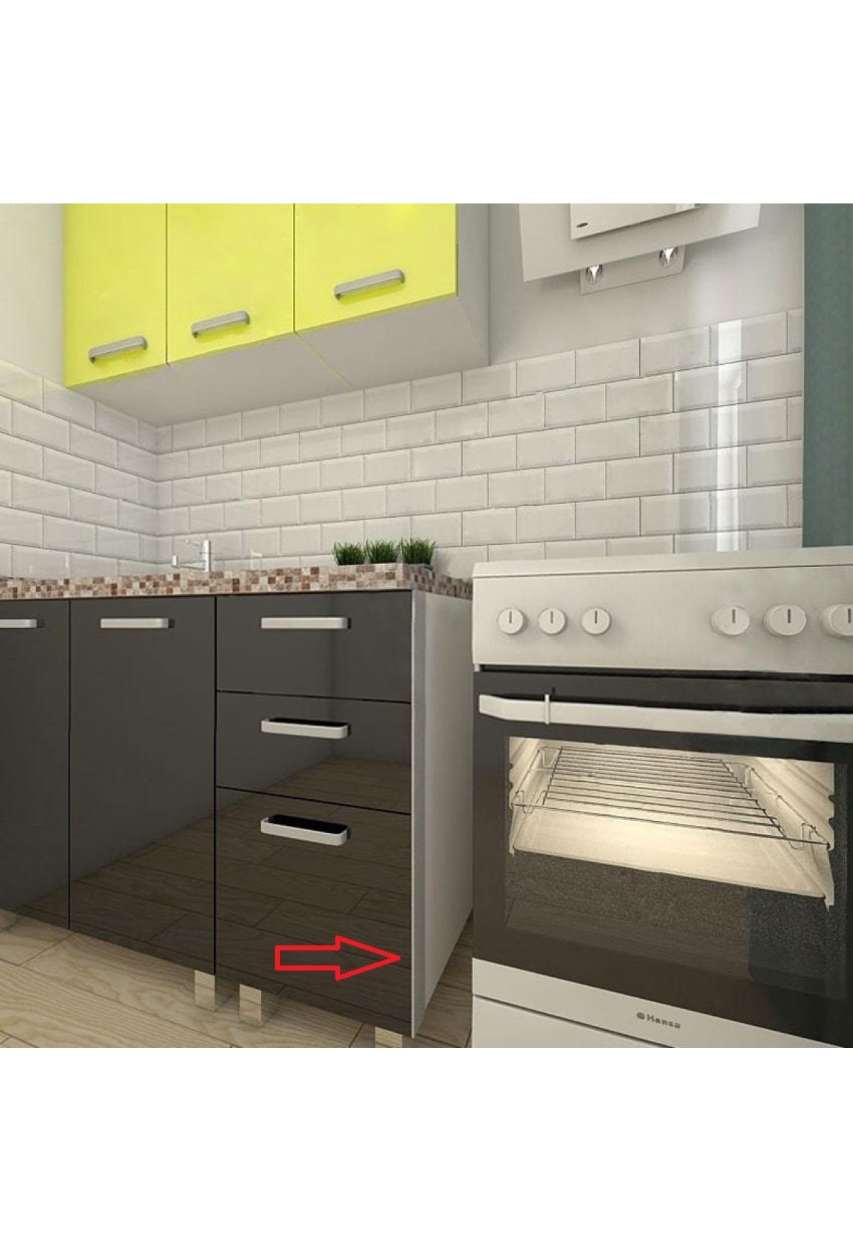 - предотвращает перегрев и повреждение фасадов и кромок панелей мебели, примыкающих к газовой плите,