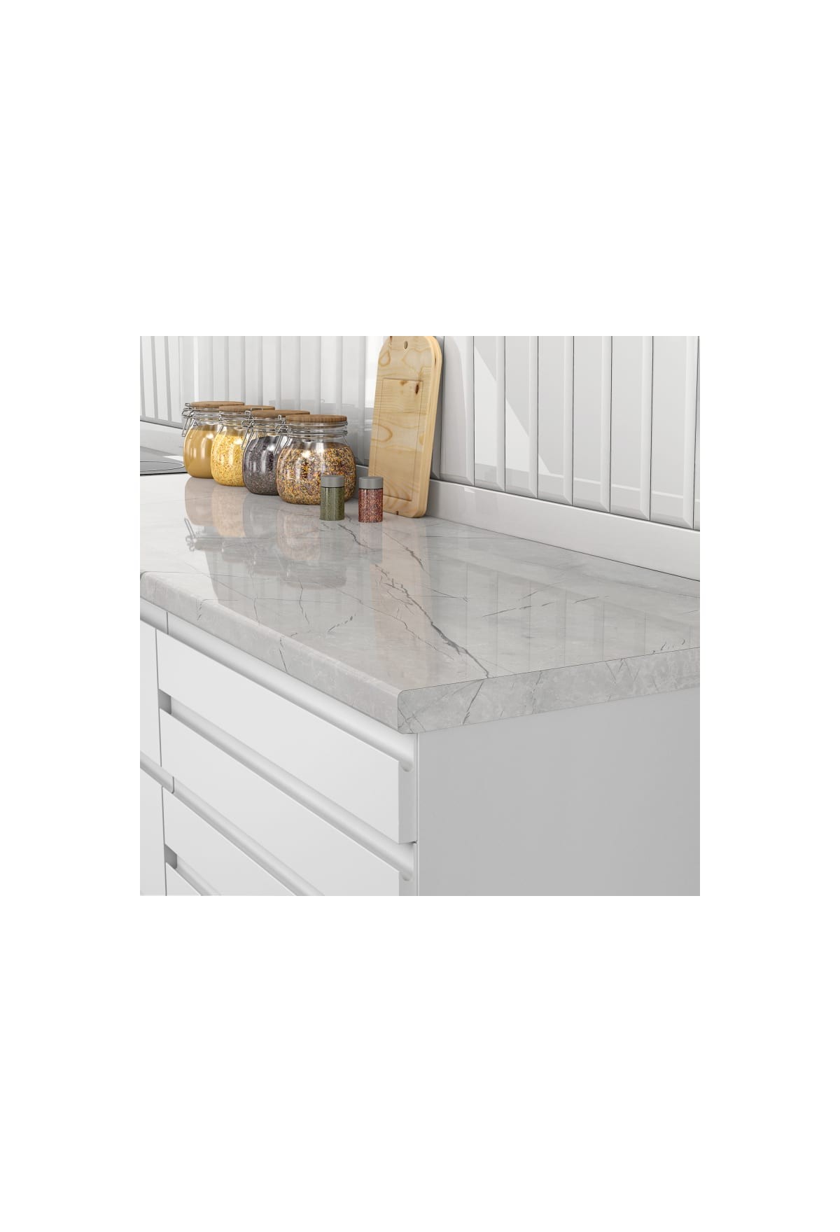 Рабочая поверхность устойчива к истиранию, появлению сколов и царапин. Столешница имеет прочное, износостойкое покрытие, является влагостойкой.