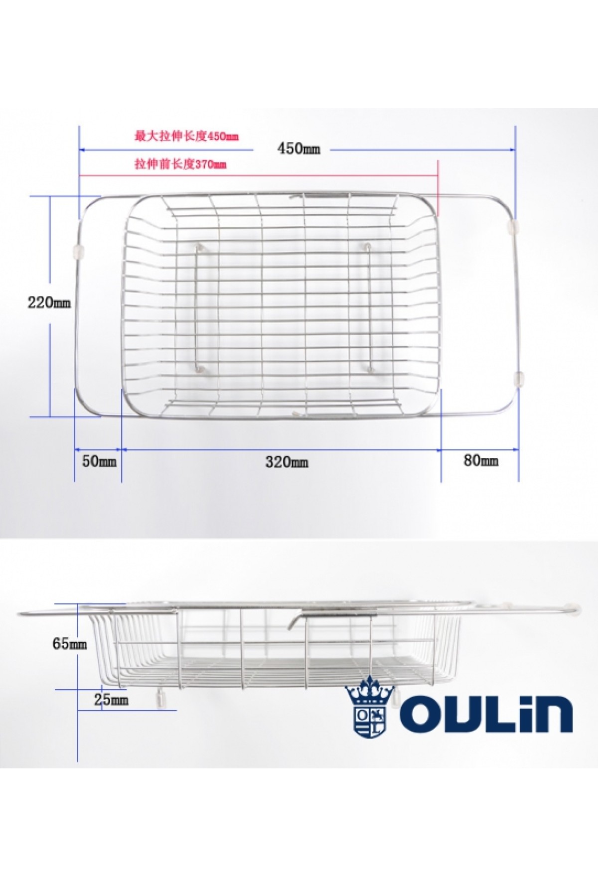 Корзина в мойку Oulin 806L универсальная нержавеющая сталь
