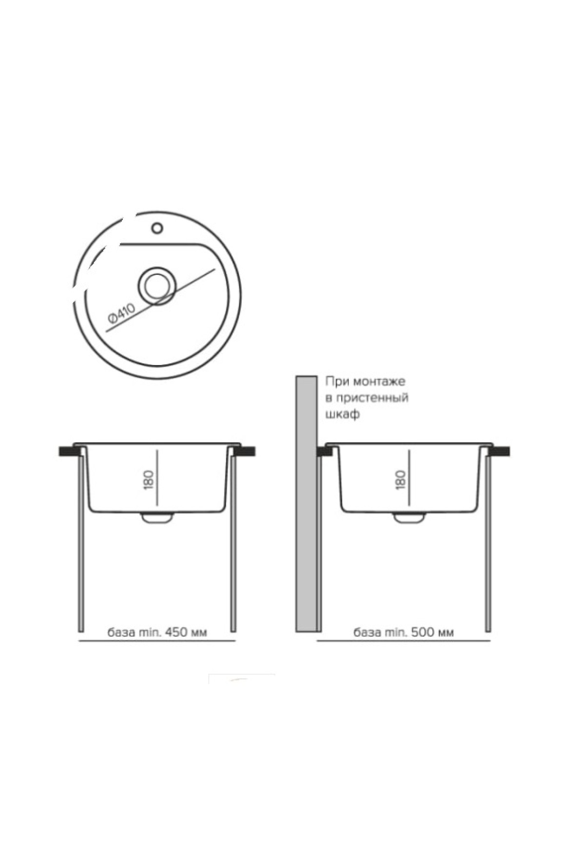 Технические характеристики мойка кварцевая Quartz Bond 480 саванна d410*200мм (без сифона)