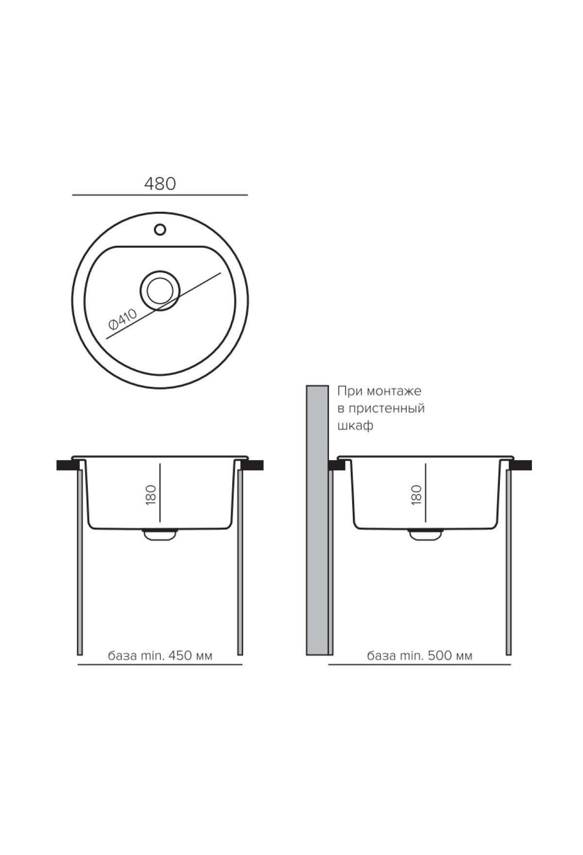 Размер тумбы под мойку: 450мм