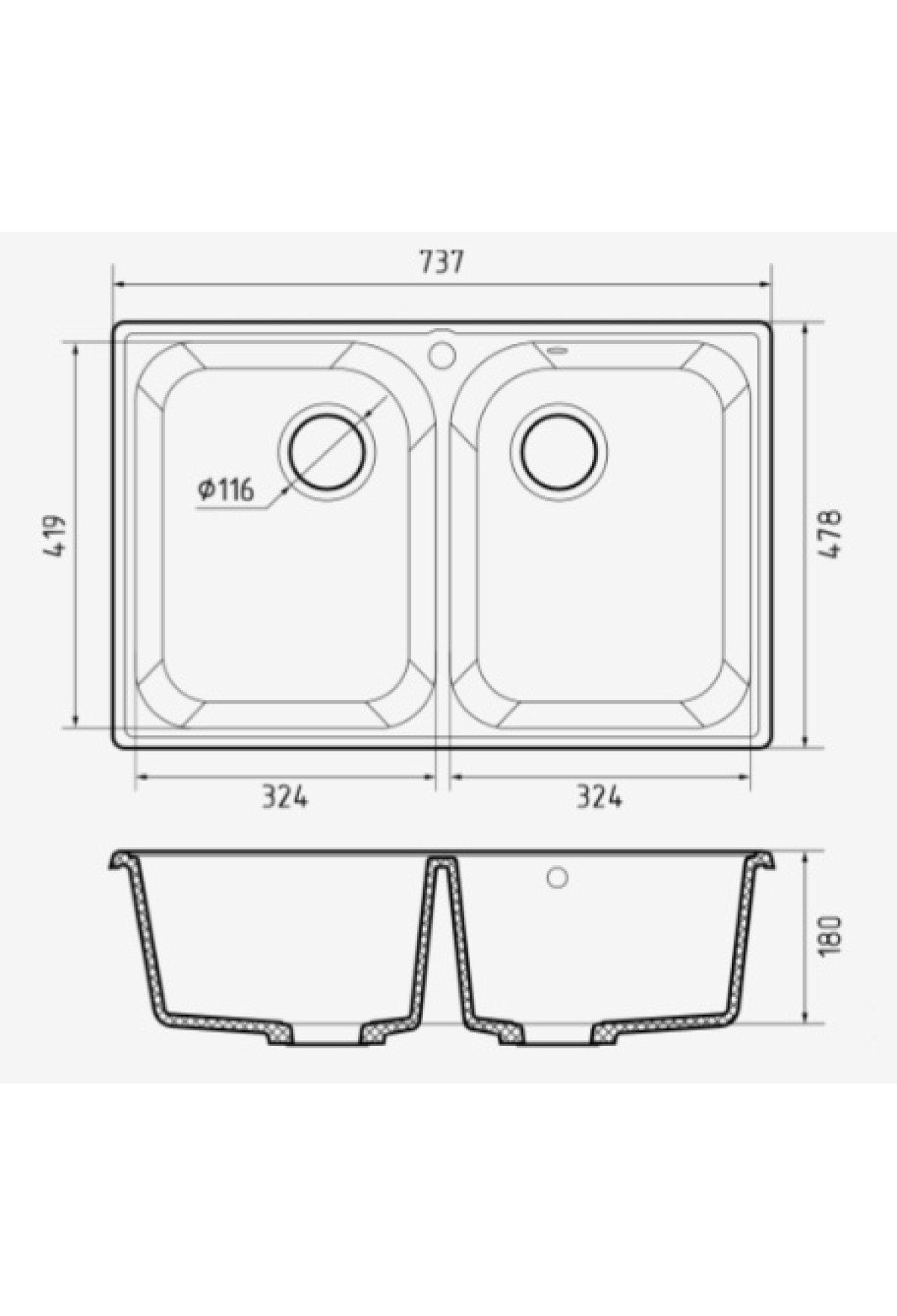 Размер чаши-2: 324 х 419 х 180 мм