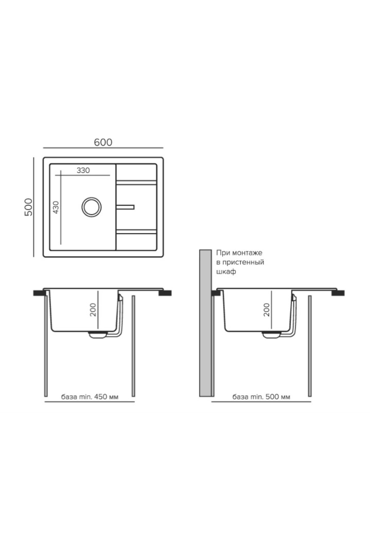 Размеры мойки (ШхДхГ): 500*600*216 мм.