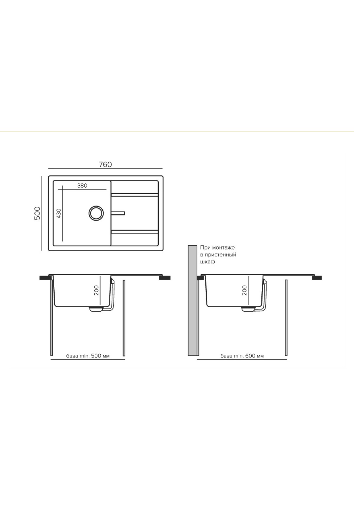 Размеры мойки (ШхДхГ): 500*760*216 мм.