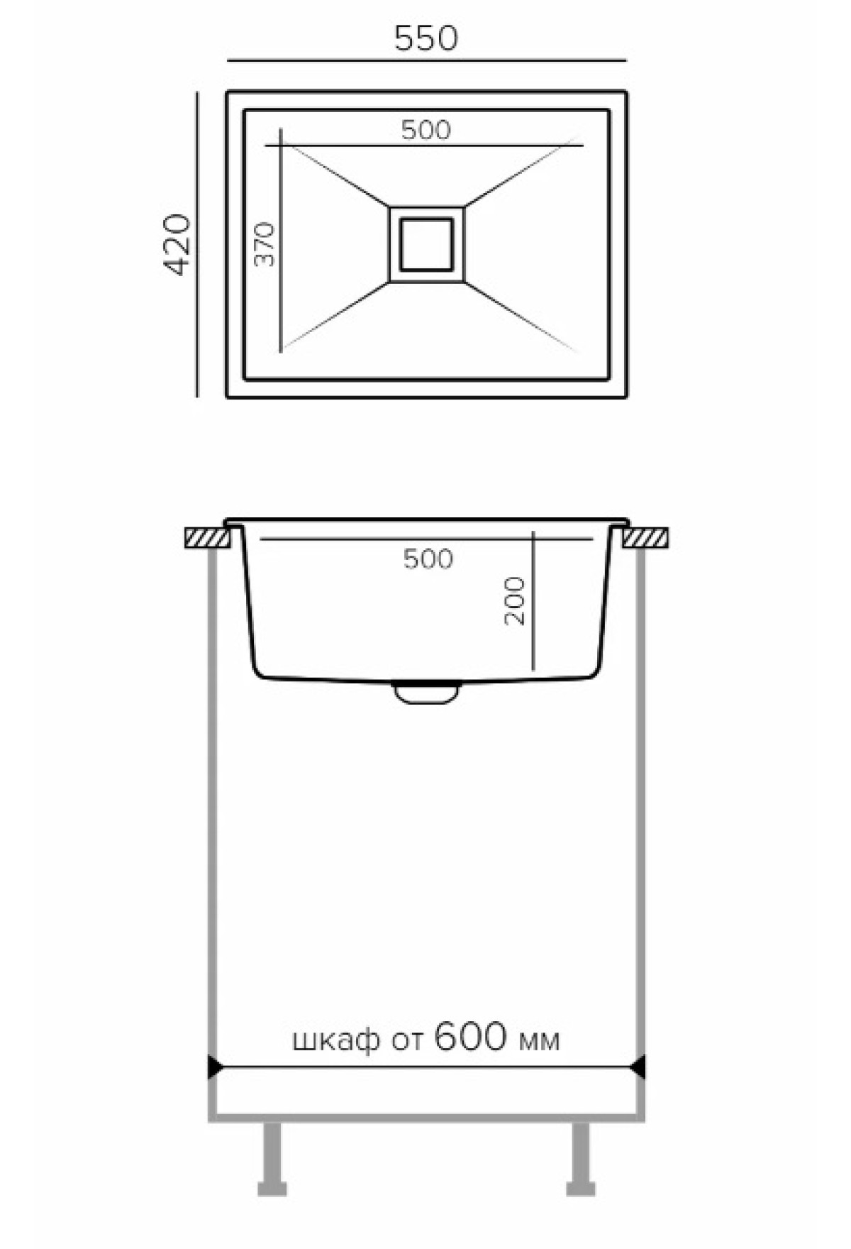 Размеры мойки (ШхДхГ): 420*550*200 мм.