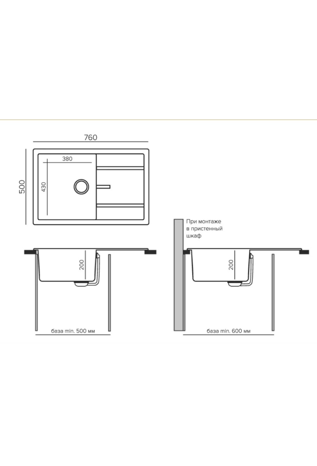 Размеры мойки (ШхДхГ): 500х760х216 мм.