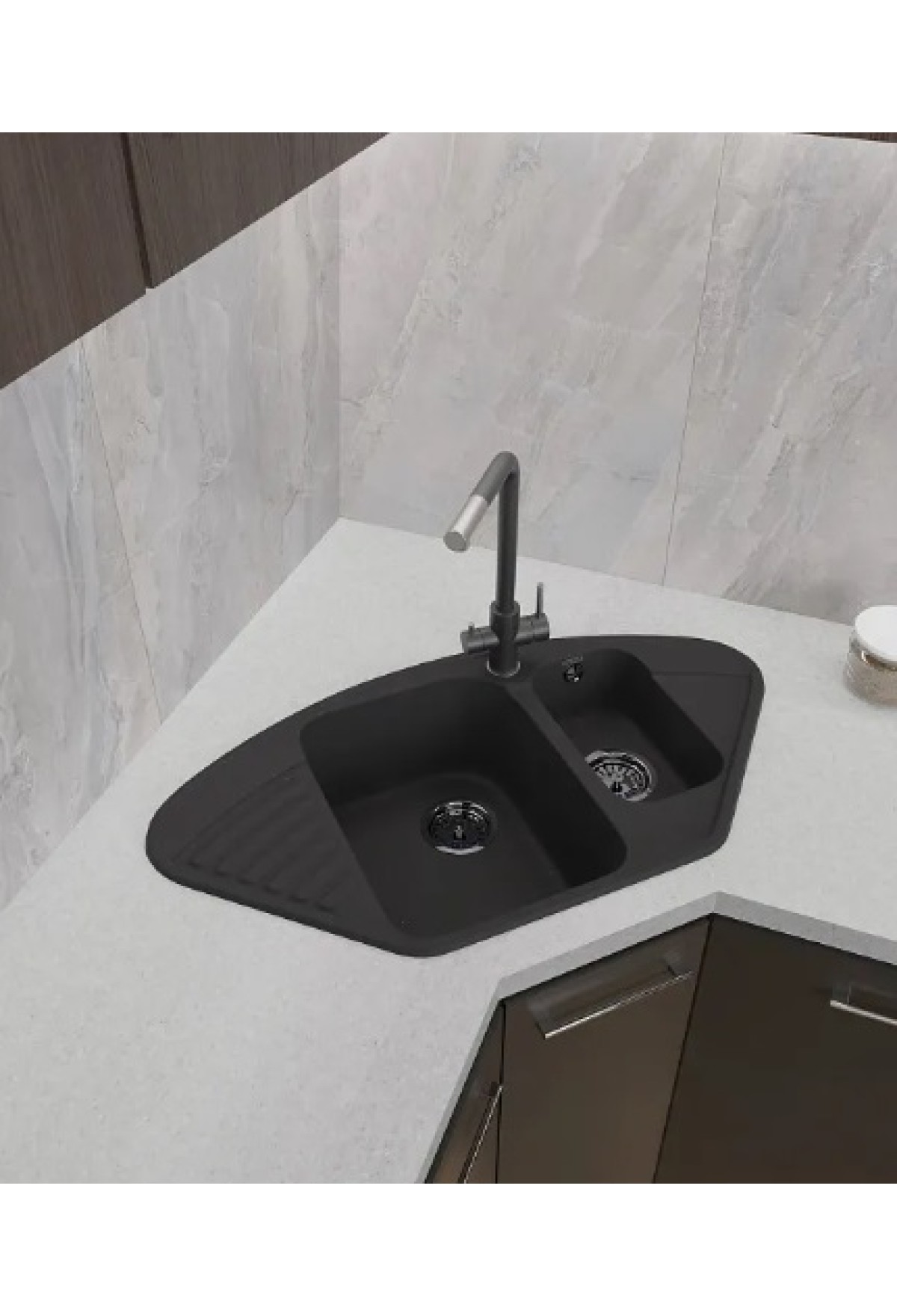 мойка кварцевая угловая GranFest QUARZ 14, черный, 927*497*180 мм(без сифона)