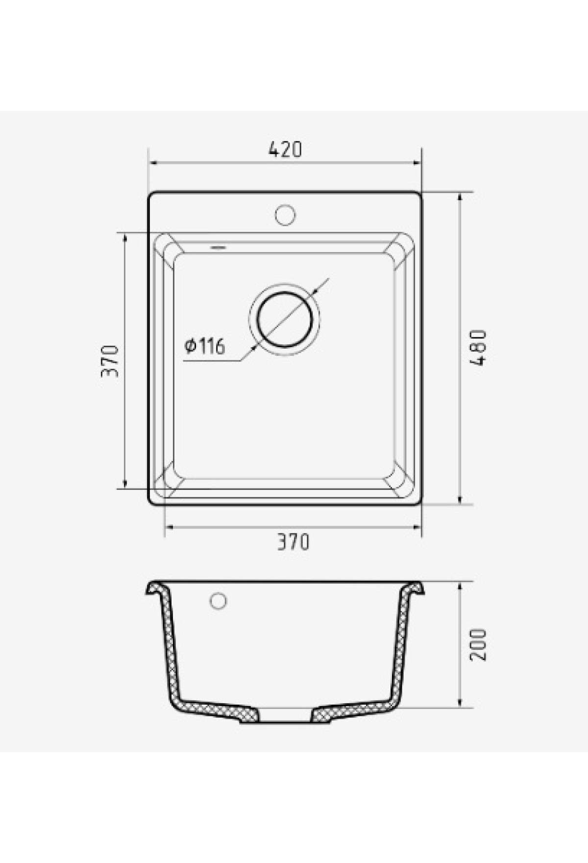 Глубина чаши 200 мм позволяет без труда мыть крупногабаритную посуду, а также минимизирует разбрызгивание воды.