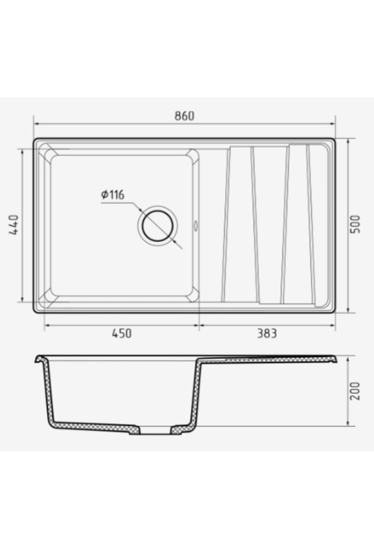 Мойка для кухни GranFest Level GF-LV-860L - наделяет интерьер визуальной гармонией и комфортом в использовании. Дизайнерскую модель отличают большая практичная чаша размером 450*440 мм, и глубиной 200 мм, которая с легкостью позволит разместить внутри крупногабаритную посуду и промывать ее без лишних усилий. Мойка снабжена многофункциональным широким крылом, на котором удобно расположить уже вымытую посуду или замороженные продукты.