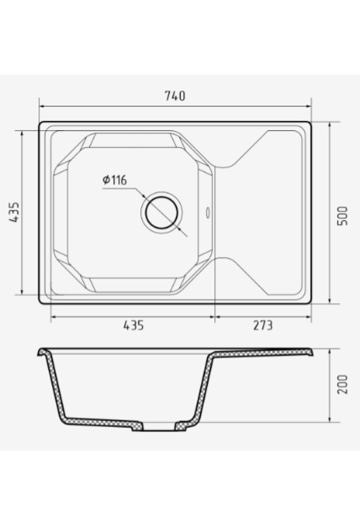 - Глубина 200мм считается оптимальной для кухонных моек: не приходится напрягать спину и брызги при сильном напоре воды не разлетаются во все стороны.