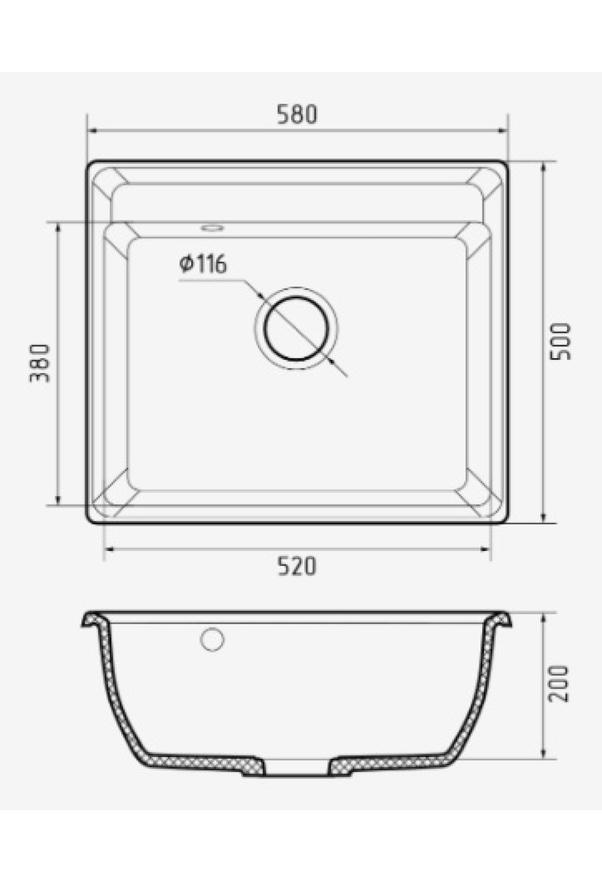 Мойка для кухни GranFest VERTEX GF-V-580 Дизайнерскую модель отличают большая практичная чаша оригинальной формы размером 520*380 мм, и глубиной 200 мм, которая с легкостью позволит разместить внутри крупногабаритную посуду и промывать ее без лишних усилий.