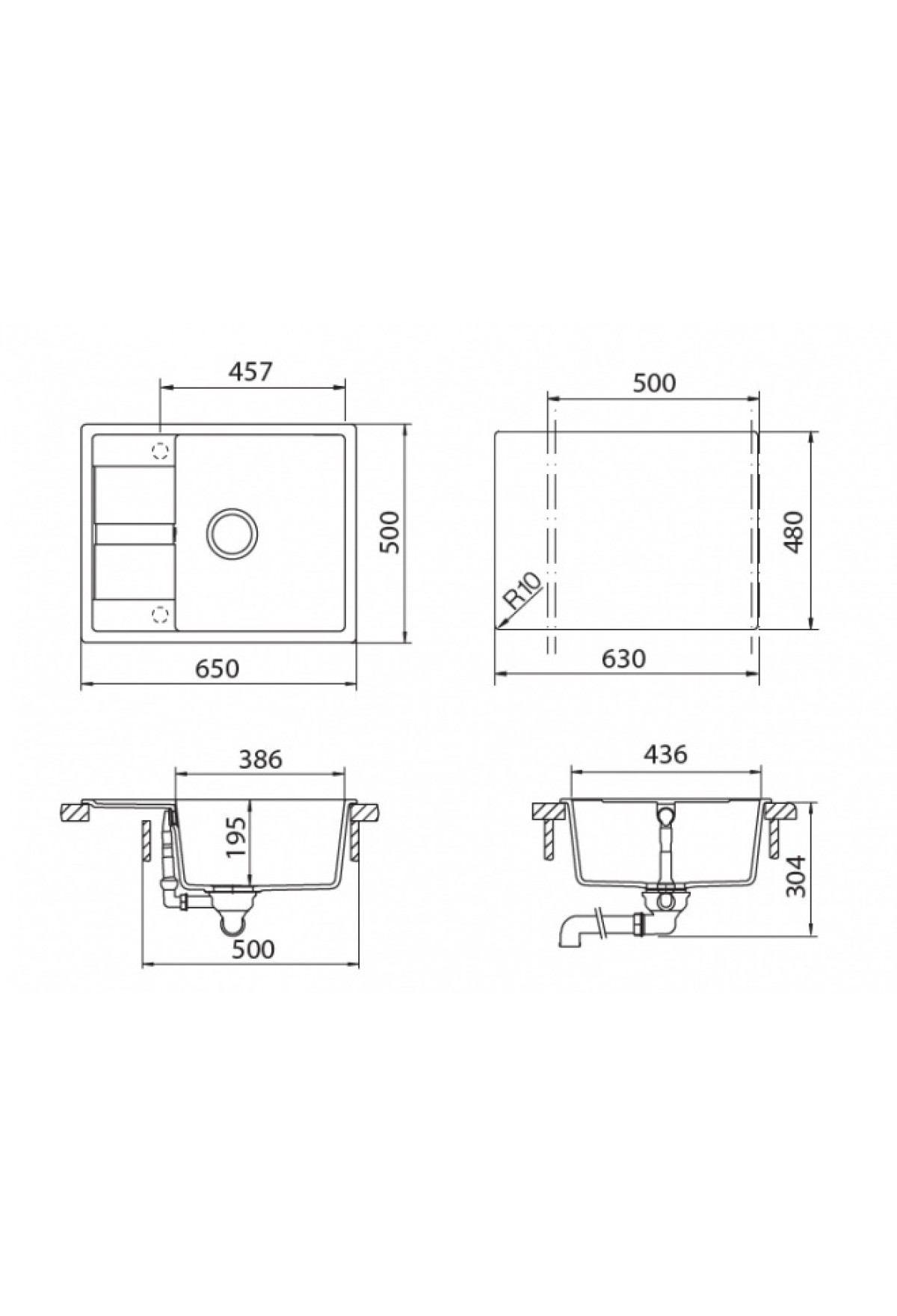 Отводная арматура с корзинчатым вентилем 3,5 дюйма и переливом, сифон с возможностью подключения посудомоечной или стиральной машины, набор крепежа для врезного монтажа. Для установки мойки под столешницу закажите комплект крепежа для подстольного монтажа 6.3016-8А.