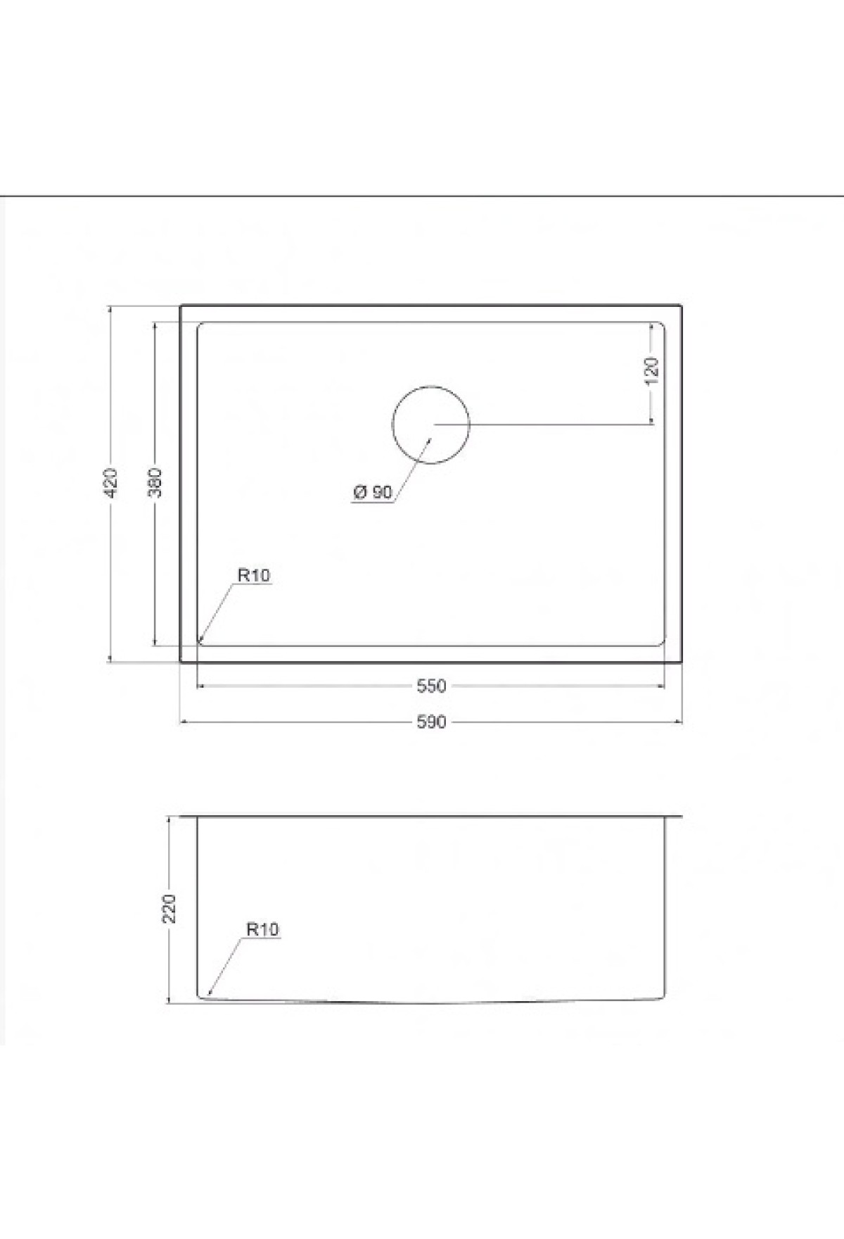 Вырез под мойку, мм
