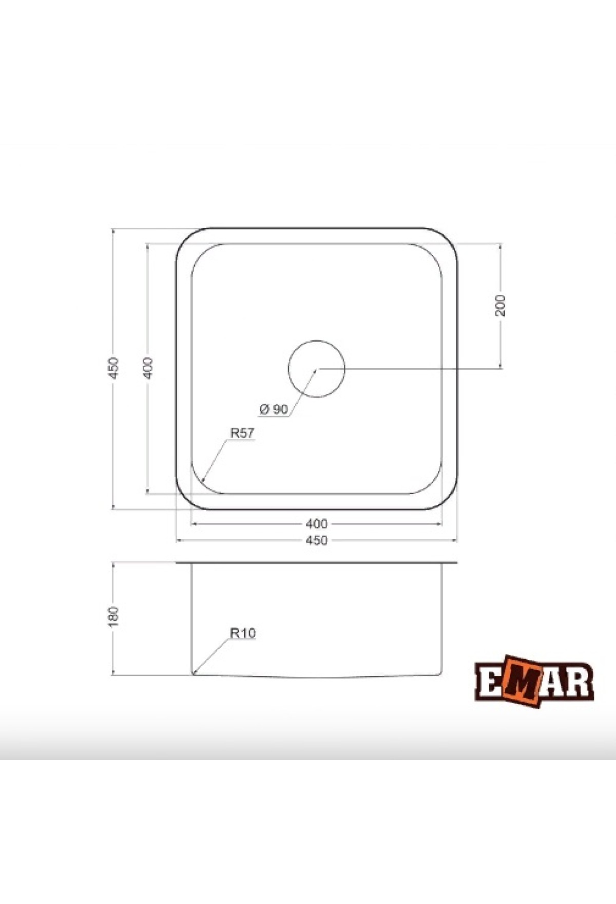 Мойка округлой формы: EMAR EMB-127A подойдет в небольшую базу. Сама мойка имеет размеры 450 x 450 мм. R59 радиус закругления c внешней стороны и R57 радиус закругления с внутренней стороны.