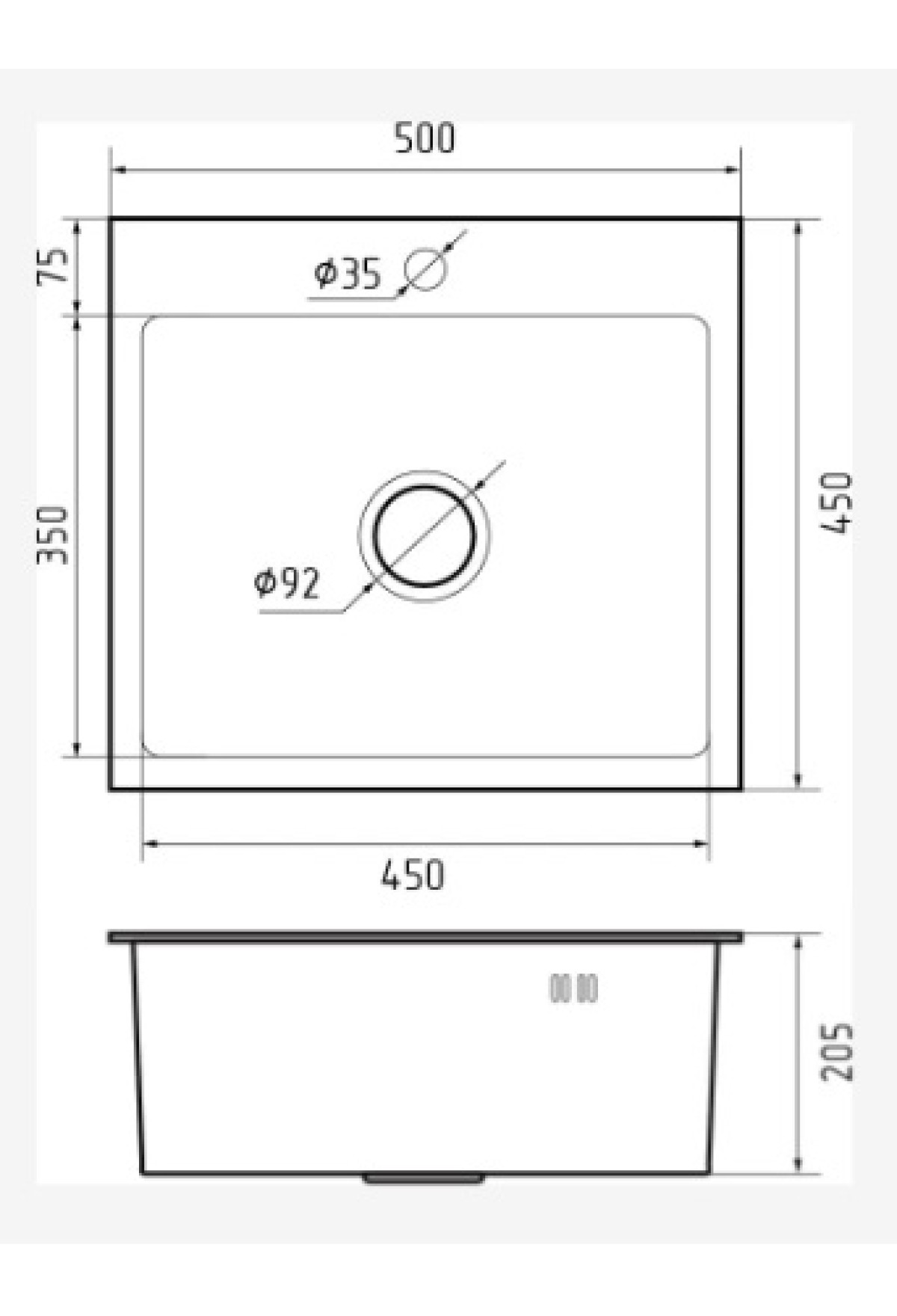 Покрытие мойки устойчиво к истиранию, а технологичный рельеф дна с уклоном к сливному отверстию способствует ускорению стекания воды.