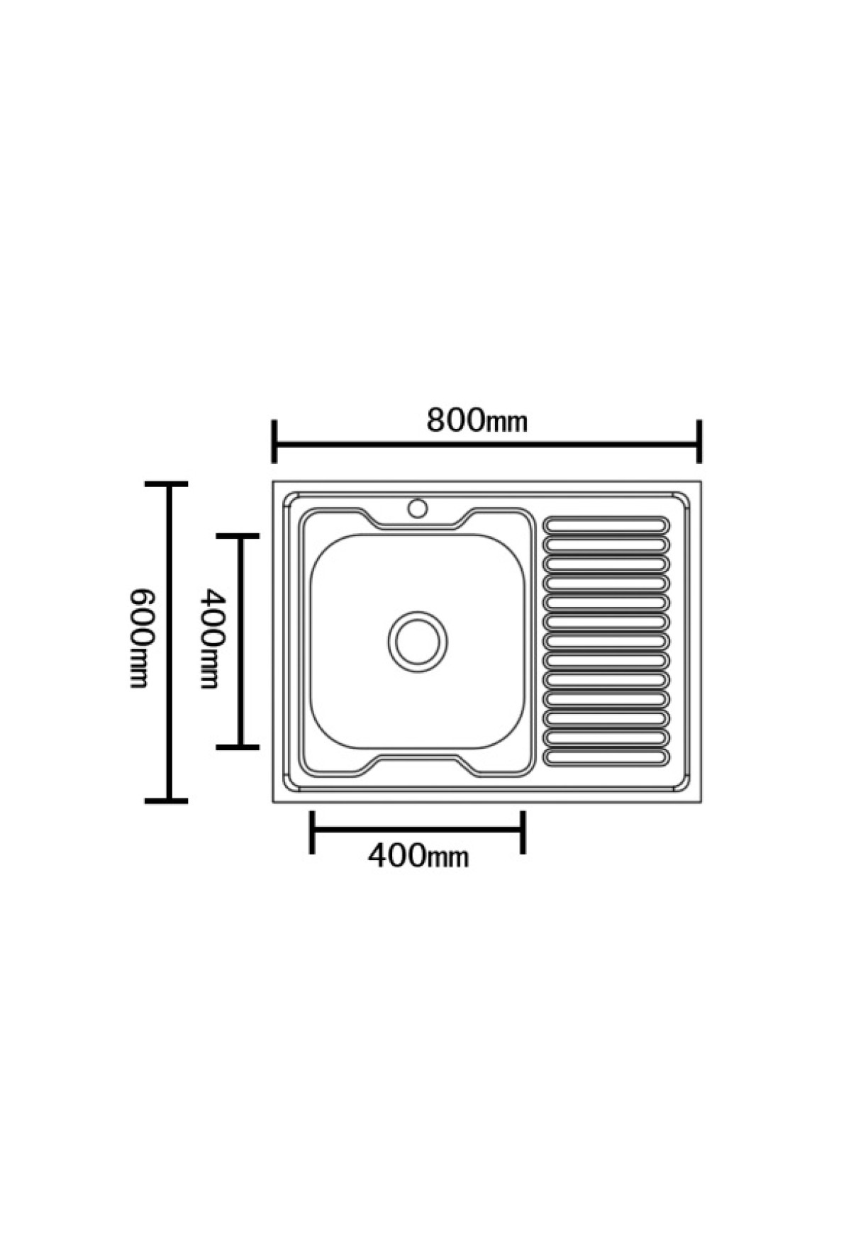 Технические характеристики Мойка накладная из нержавеющей стали 800*600*160*0,6мм+сифон полированная правая