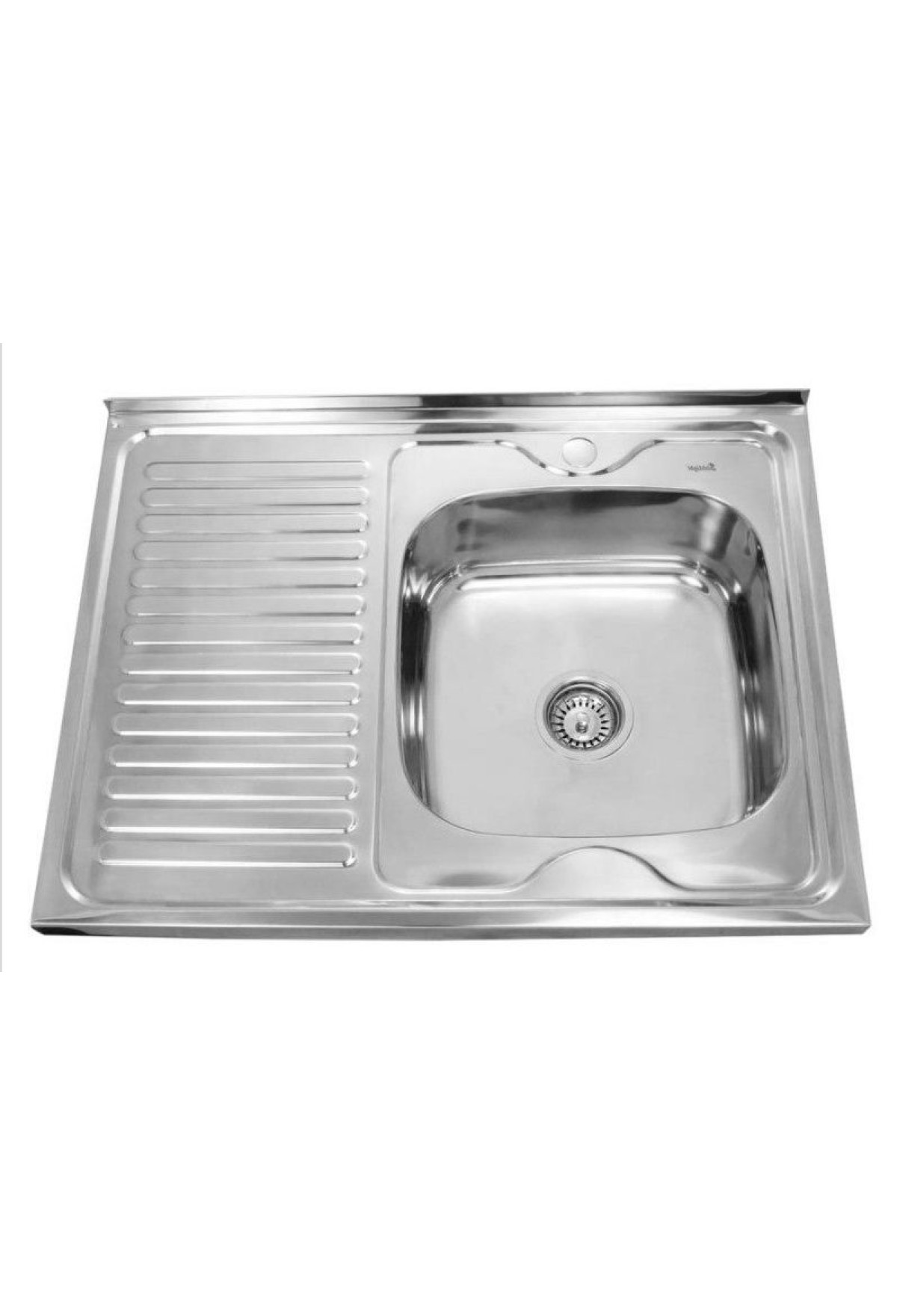 Мойка накладная из нержавеющей стали 800*600*160*0,6мм+сифон полированная правая