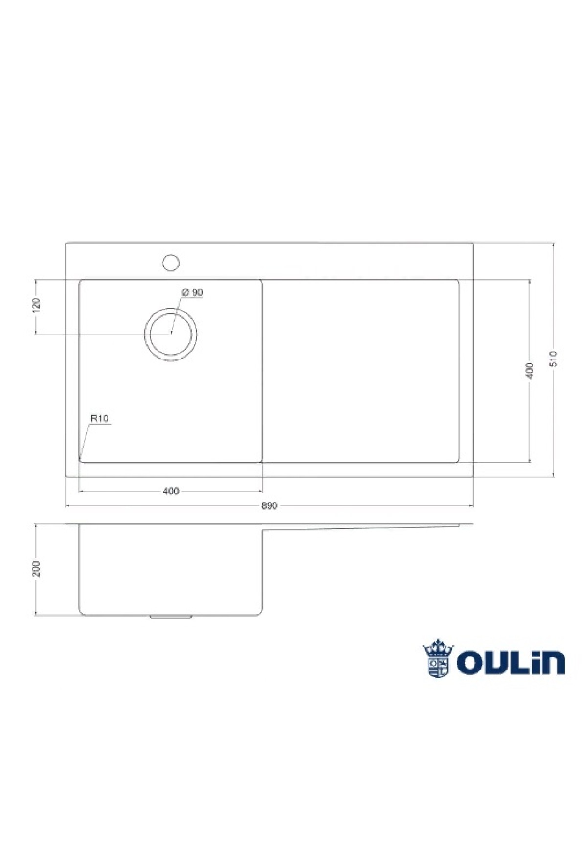 OULIN OL-FTL101R большая кухонная мойка с крылом. Мойка достаточно большая, идет в модуль 900 мм. Тип исполнения мойки - сварная. Без Pop-Up системы. Оснащена шумопоглощающим напылением на обратной стороне. Мойка необорачиваемая из нержавеющей стали. Сталь 304 марки, толщина мойки 1.2 мм. Все необходимое для установки и подключения, идет в комплекте. Мойка с квадратным переливом. В комплекте поставляется 2 комплекта креплений. Ушки (крючки) приварены. Чаша у мойки с левой стороны.