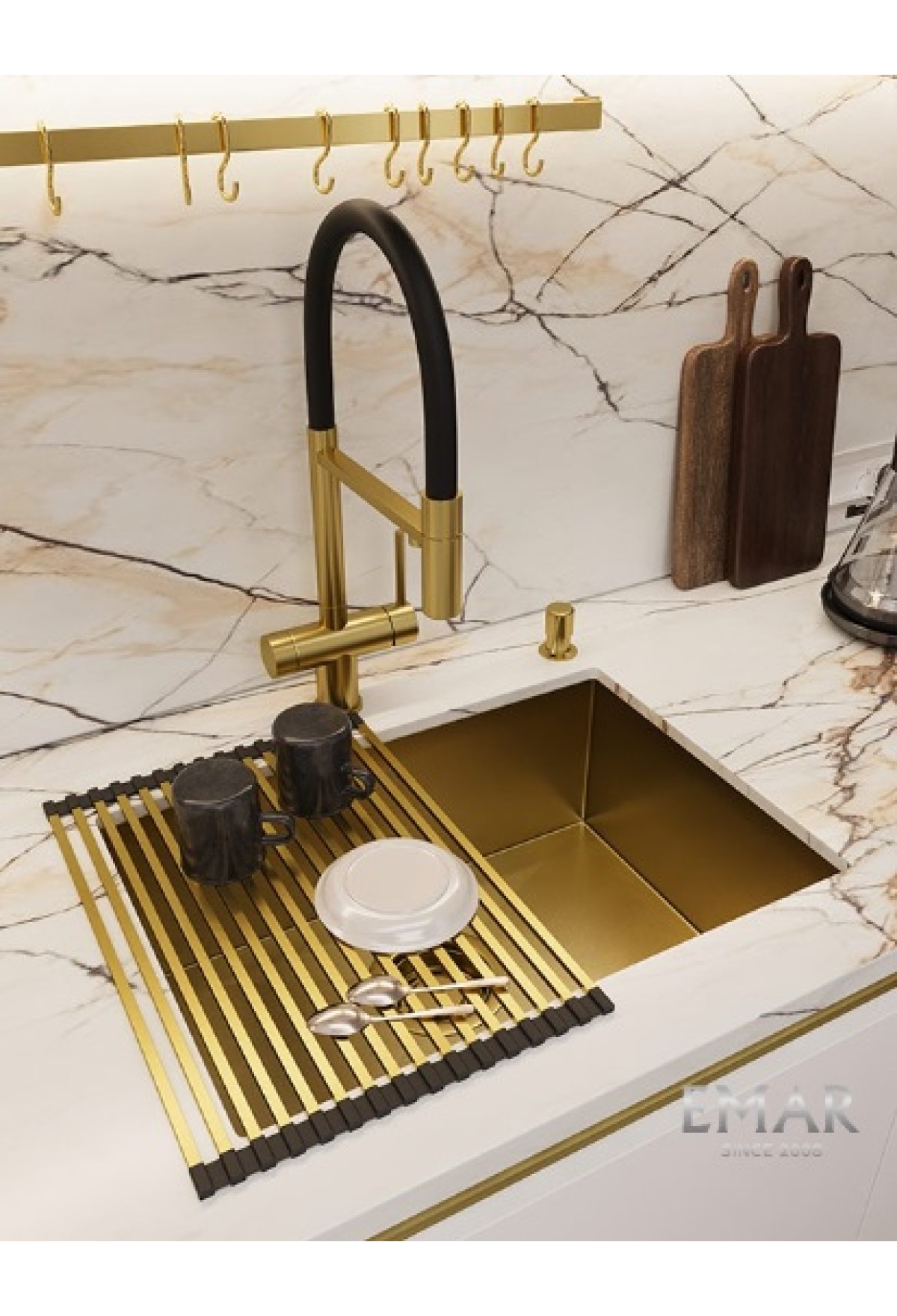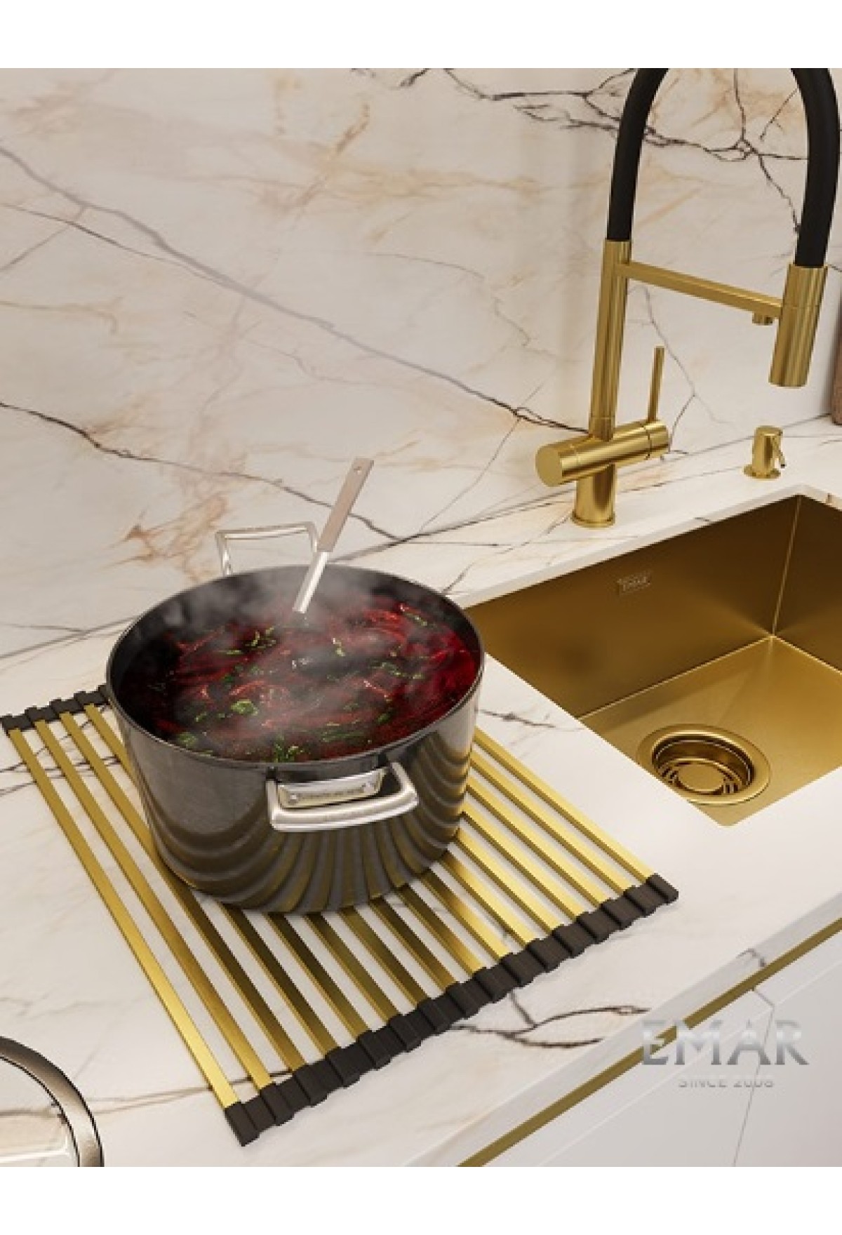 Стильные коврики «Ролл-мат» расстилаются на кухонных мойках или на столешнице. Используют для сушки овощей, посуды, а также для размещения горячих кастрюль и сковородок.